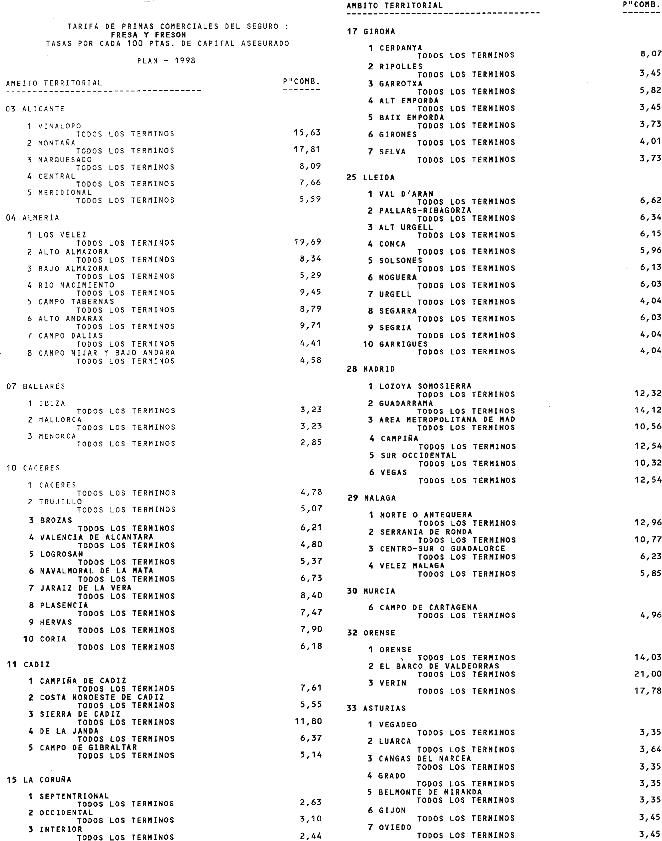 De conformidad con el Plan Anual de Seguros de 1998, aprobado por Consejo de Ministros, se garantiza la producción de fresa y fresón contra los riesgos de helada, pedrisco, lluvia y daños excepcionales por inundación y viento, en base a estas condiciones especiales, complementarias de las generales de la póliza de seguros agrícolas, de las que este anexo es parte integrante.