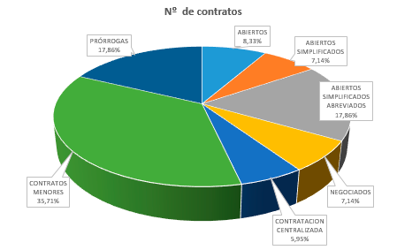 | Procedimiento de adjudicación | Total contratos | N.º de contratos PYMES | % contratos PYMES |