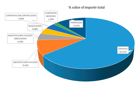 | Procedimiento de adjudicación | N.º de contratos | % sobre el total | Importe adjudicación (Sin IVA) |