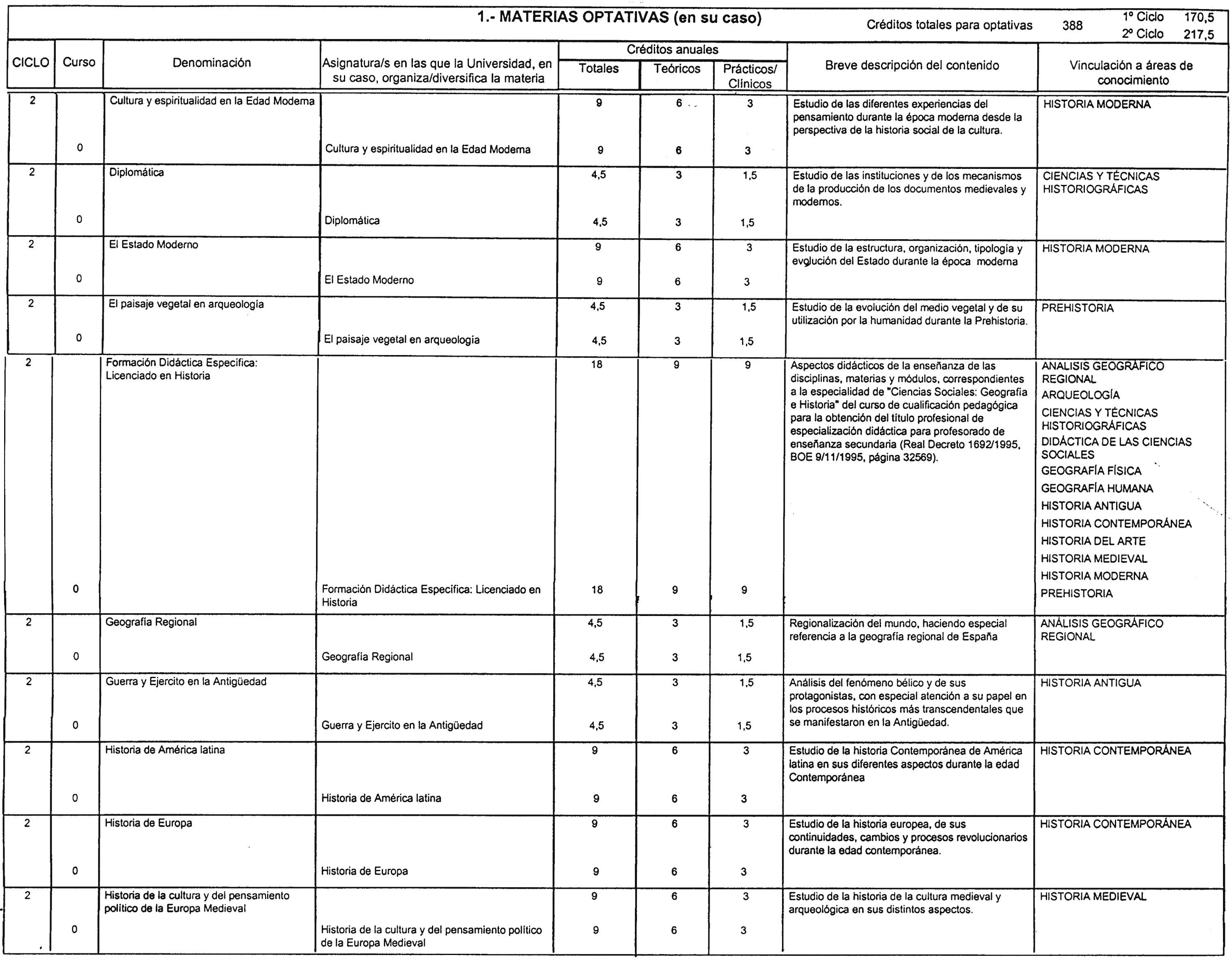 La Universidad de Valencia (Estudi General de València), por acuerdo de su Junta de Gobierno, de 18 de abril de 2000, aprobó el plan de estudios de Licenciado en Historia, adaptado al Real Decreto 779/1998, de 30 de abril, y elaborado al amparo del Real Decreto de Directrices Generales Propias 1448/1990, de 26 de octubre («Boletín Oficial del Estado» número 278, de 20 de noviembre).