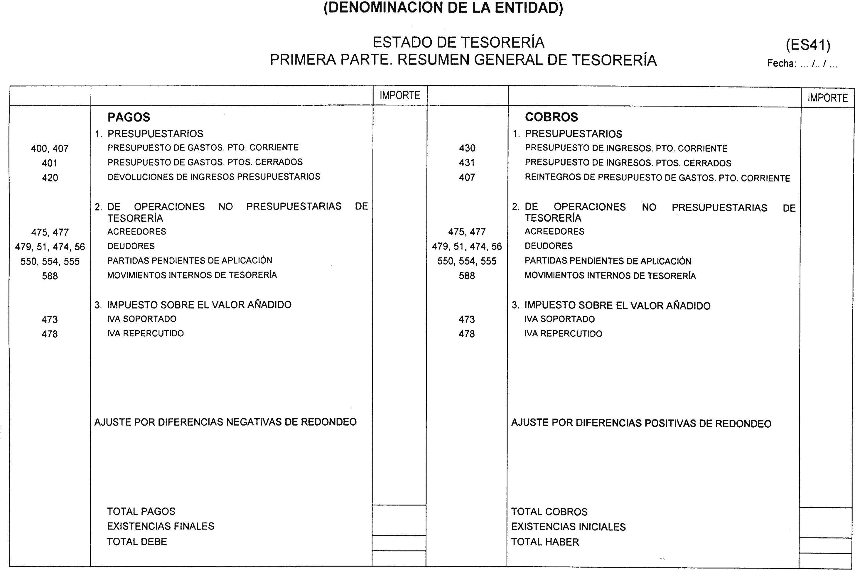 A partir del ejercicio 2002, el Estado de Tesorería a rendir por las Entidades Locales y sus Organismos Autónomos incluirá en su primera parte «Resumen General de Tesorería» un ajuste por las diferencias de redondeo producidas en la Tesorería a que se refiere la norma Cuarta, apartado dos, de esta Orden.