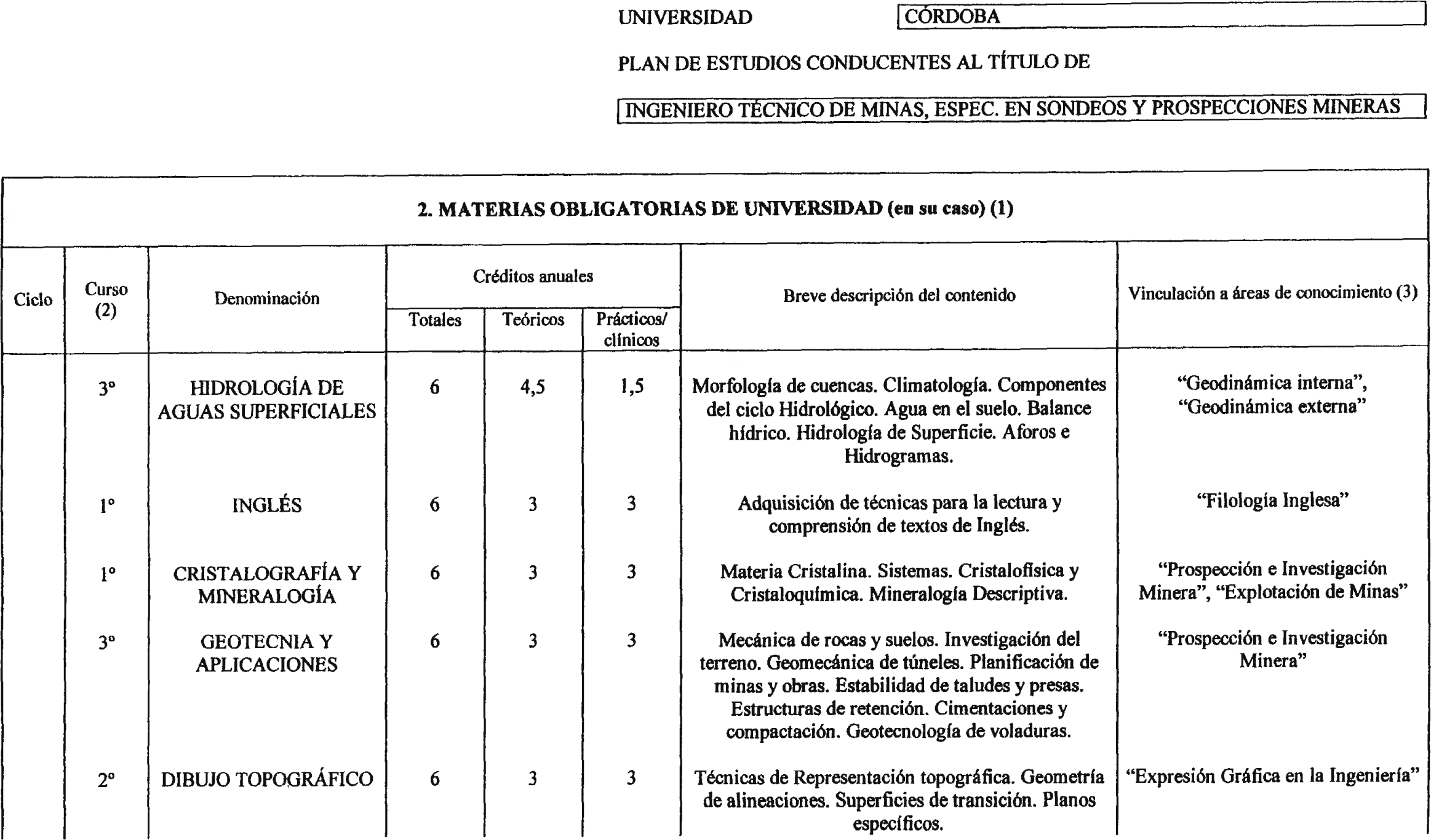 El Consejo de Universidades, por acuerdo de su Comisión Académica de fecha 10 de junio de 2002, ha aprobado la modificación del plan de estudios de Ingeniero Técnico de Sondeos y Prospecciones Mineras, que se imparte en la Escuela Universitaria Politécnica de Bélmez de esta Universidad, conforme figura en el anexo adjunto, y que sustituye el plan de estudios homologados por el Consejo de Universidades el 6 de julio de 1999, publicado en el «Boletín Oficial del Estado» número 225, de 20 de septiembre.