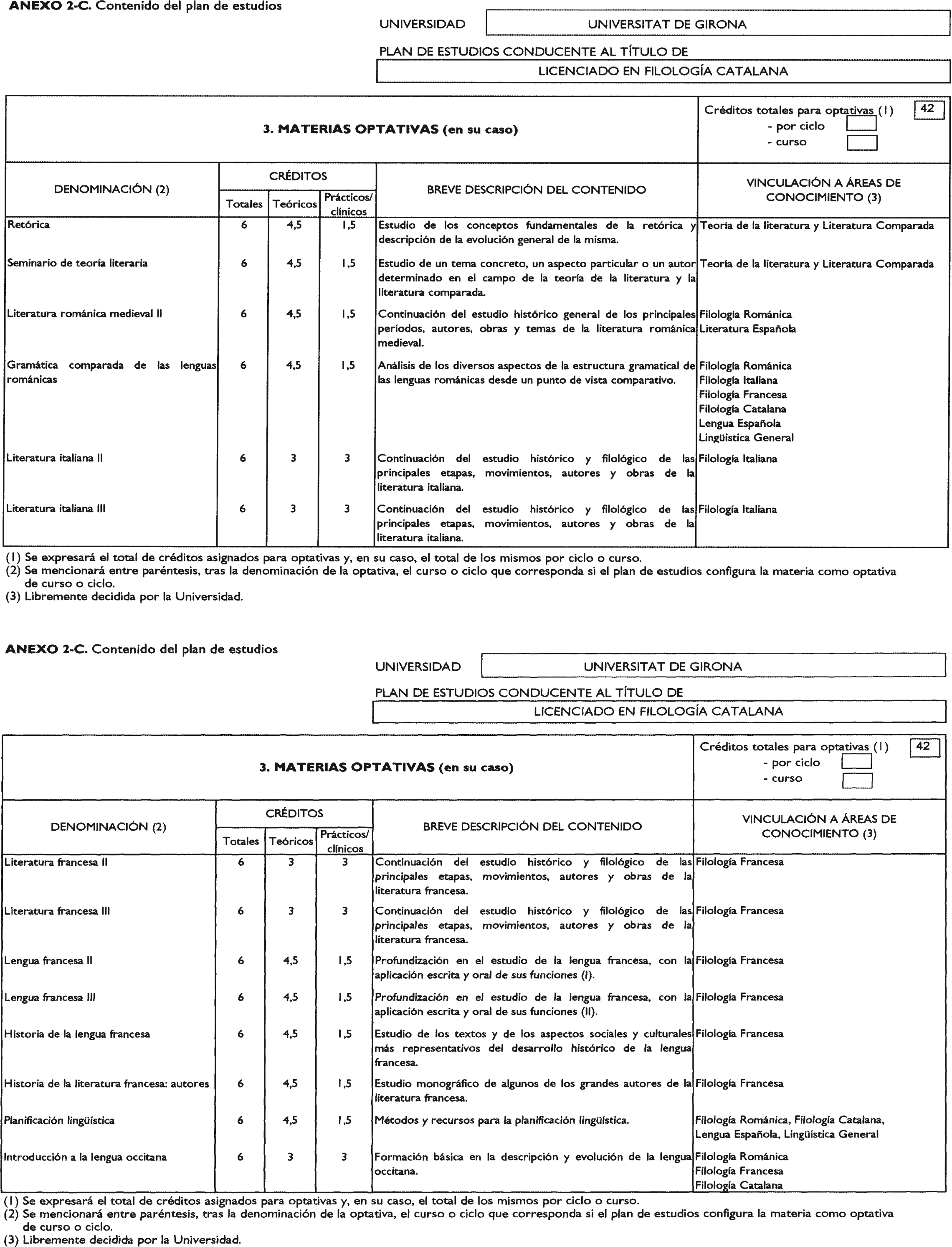 Homologado por el Consejo de Coordinación Universitaria, por acuerdo de su Comisión Académica de fecha 31 de octubre de 2003, la modificación del plan de estudios conducente al título oficial de Licenciado en Filología Catalana de la Universidad de Girona, queda configurado conforme figura en el anexo de esta resolución.
