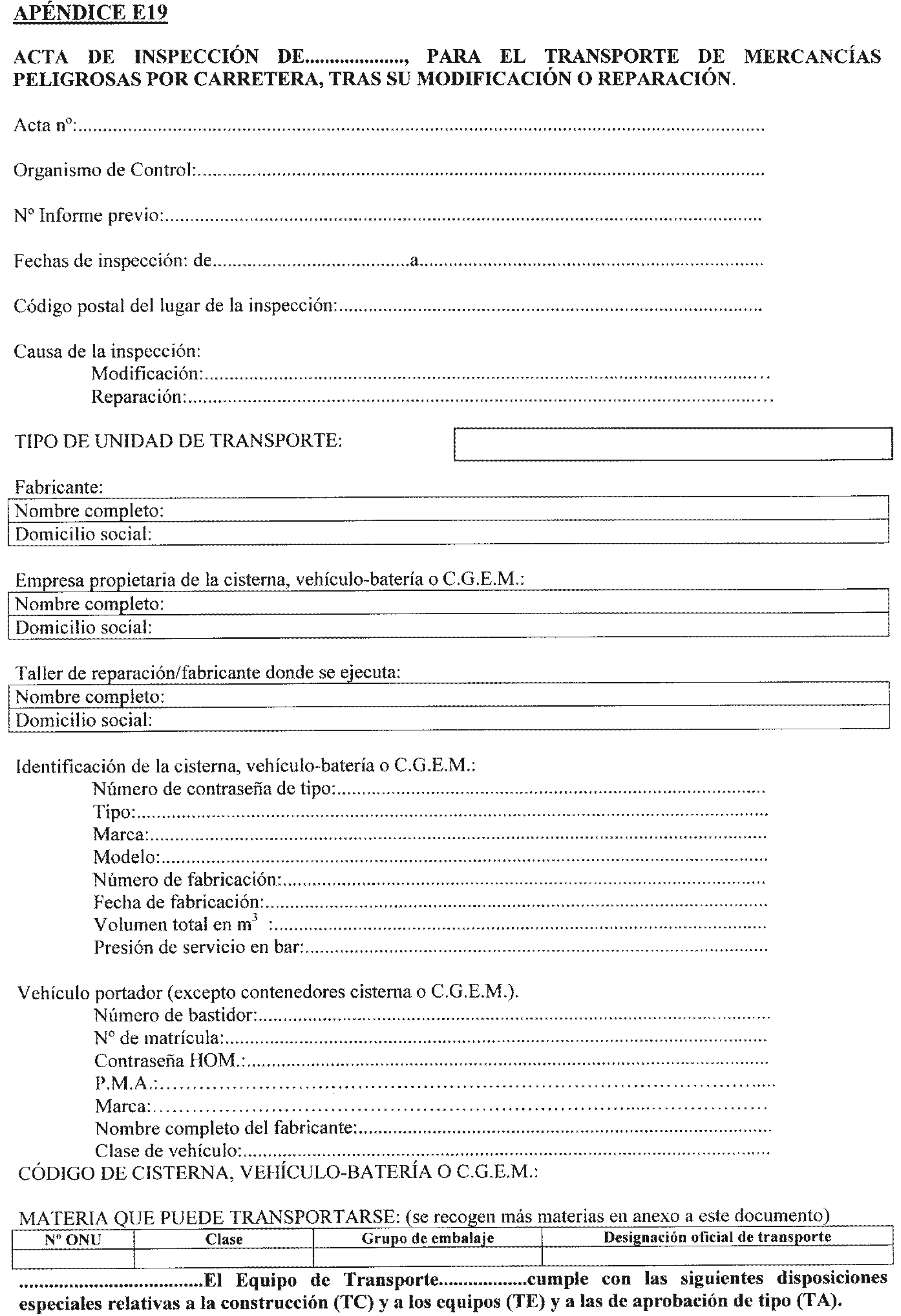 Todo lo anterior aconseja, por un lado, la actualización del contenido del Anejo 3, por otro lado, la modificación de los equipos requeridos para las inspecciones de cisternas que figuran en el Anejo 4, del modelo de certificado de aprobación ADR que figuran en el Apéndice F1 del Anejo 6, y, finalmente, del contenido de diversos apéndices del Anejo 5 relativos a la construcción e inspección de cisternas y vehículos.