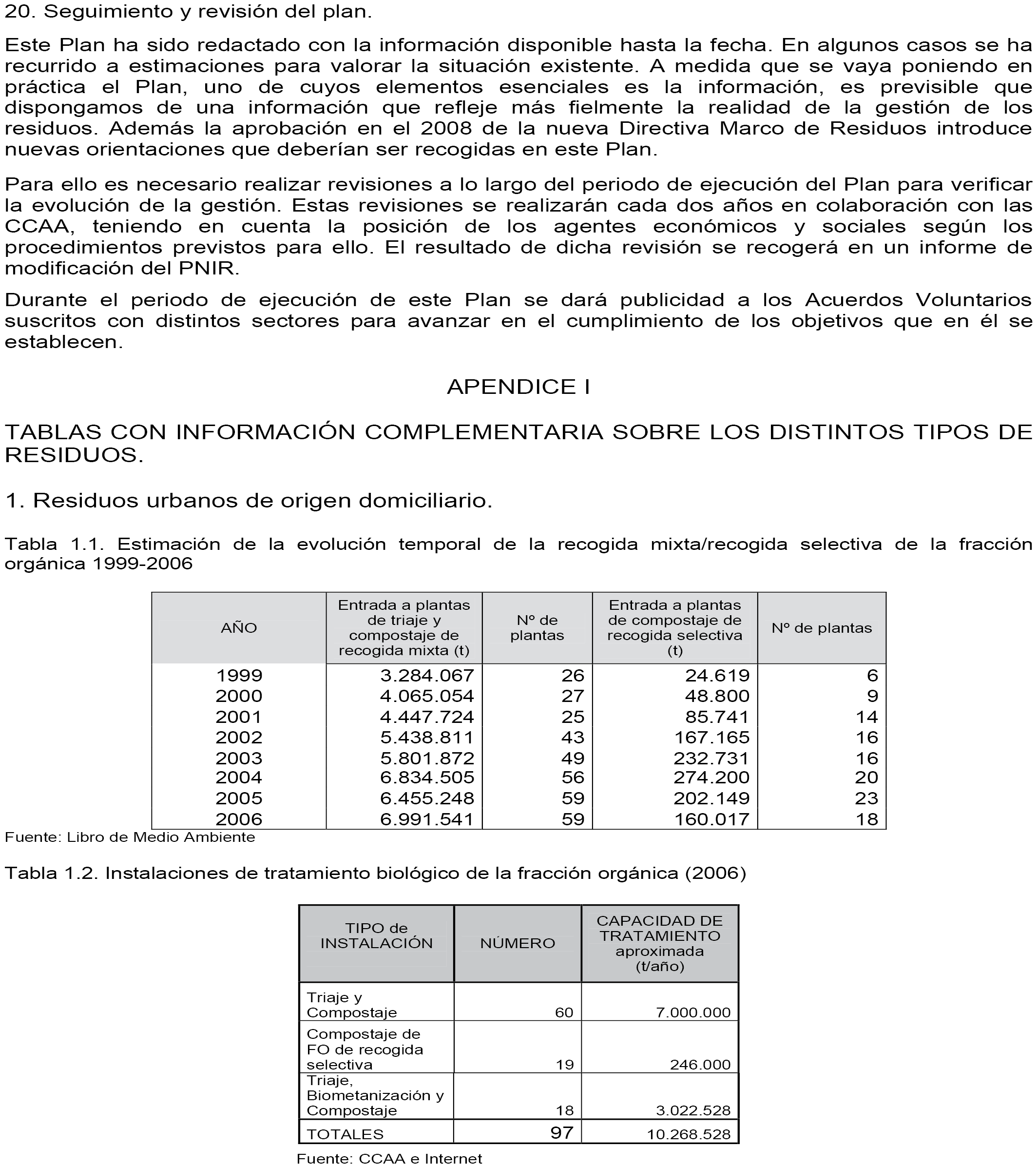 Aprobar el Plan Nacional Integrado de Residuos (PNIR) para el período 2008-2015 que se contiene en el anexo al presente acuerdo y las tablas de información complementaria que se incluyen en su apéndice I.