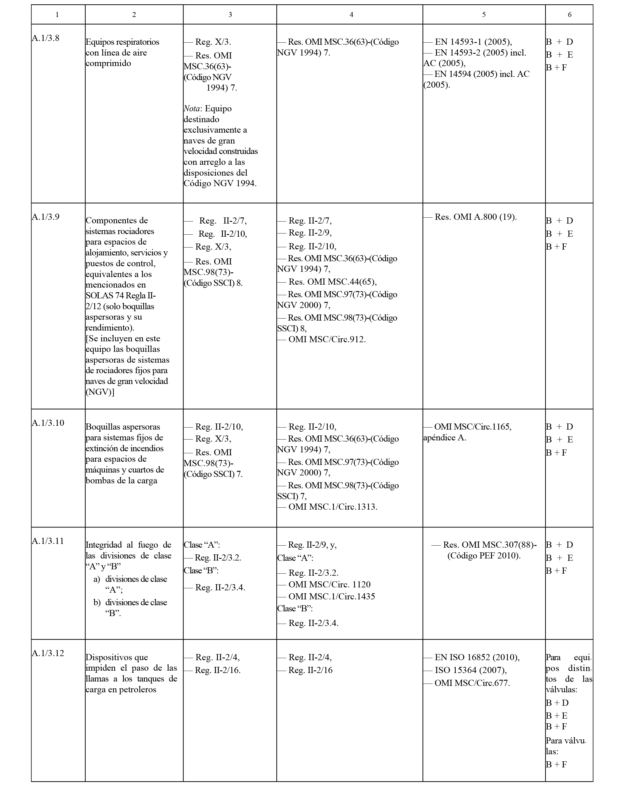 Nota general para el anexo A: En algunas denominaciones de equipos, la columna 5 muestra posibles variantes de productos dentro de la misma denominación. Las variantes de productos se consignan de forma independiente y van separadas por una línea de puntos. Con fines de certificación, solo se elegirá el producto pertinente, según proceda (por ejemplo: A.1/3.3).