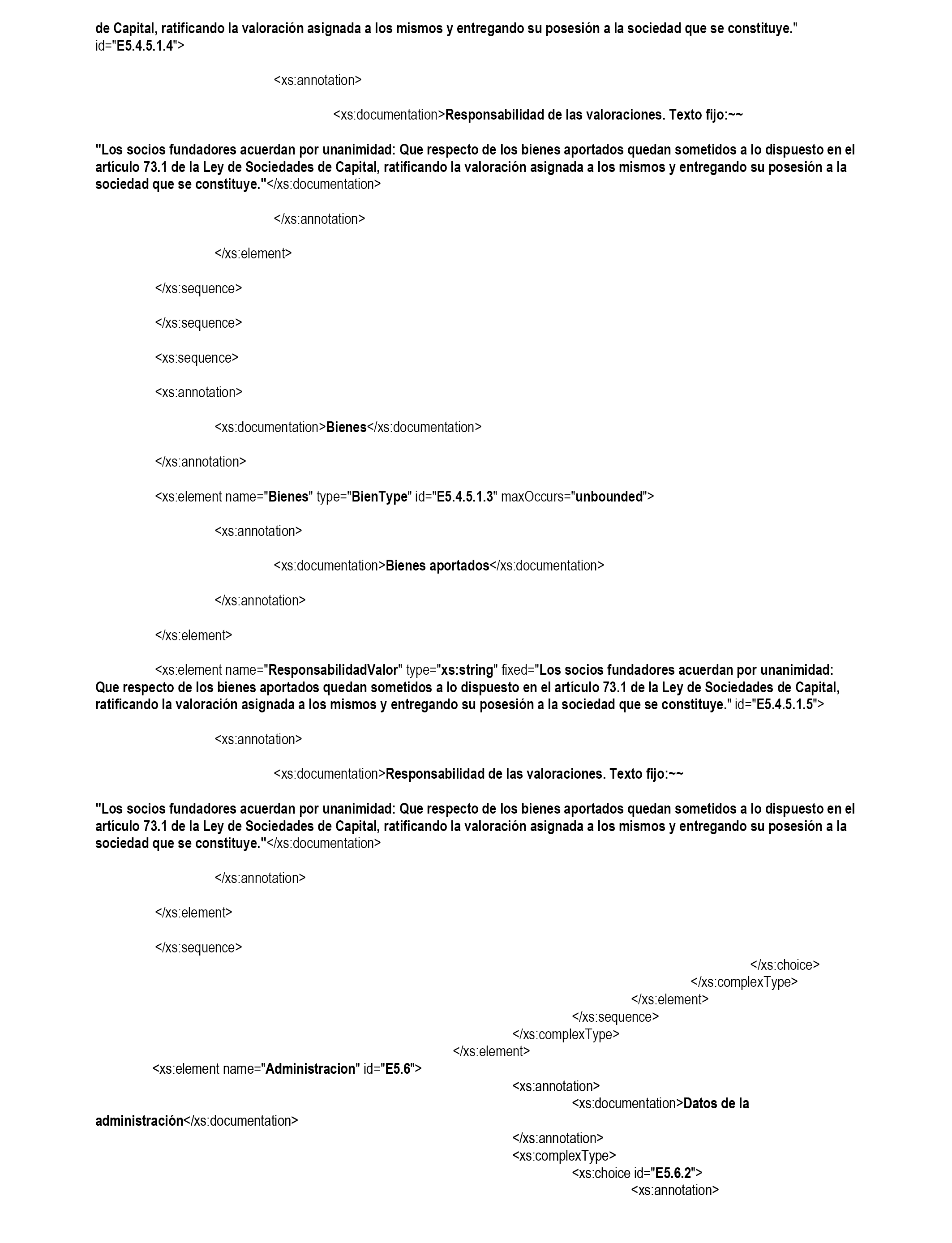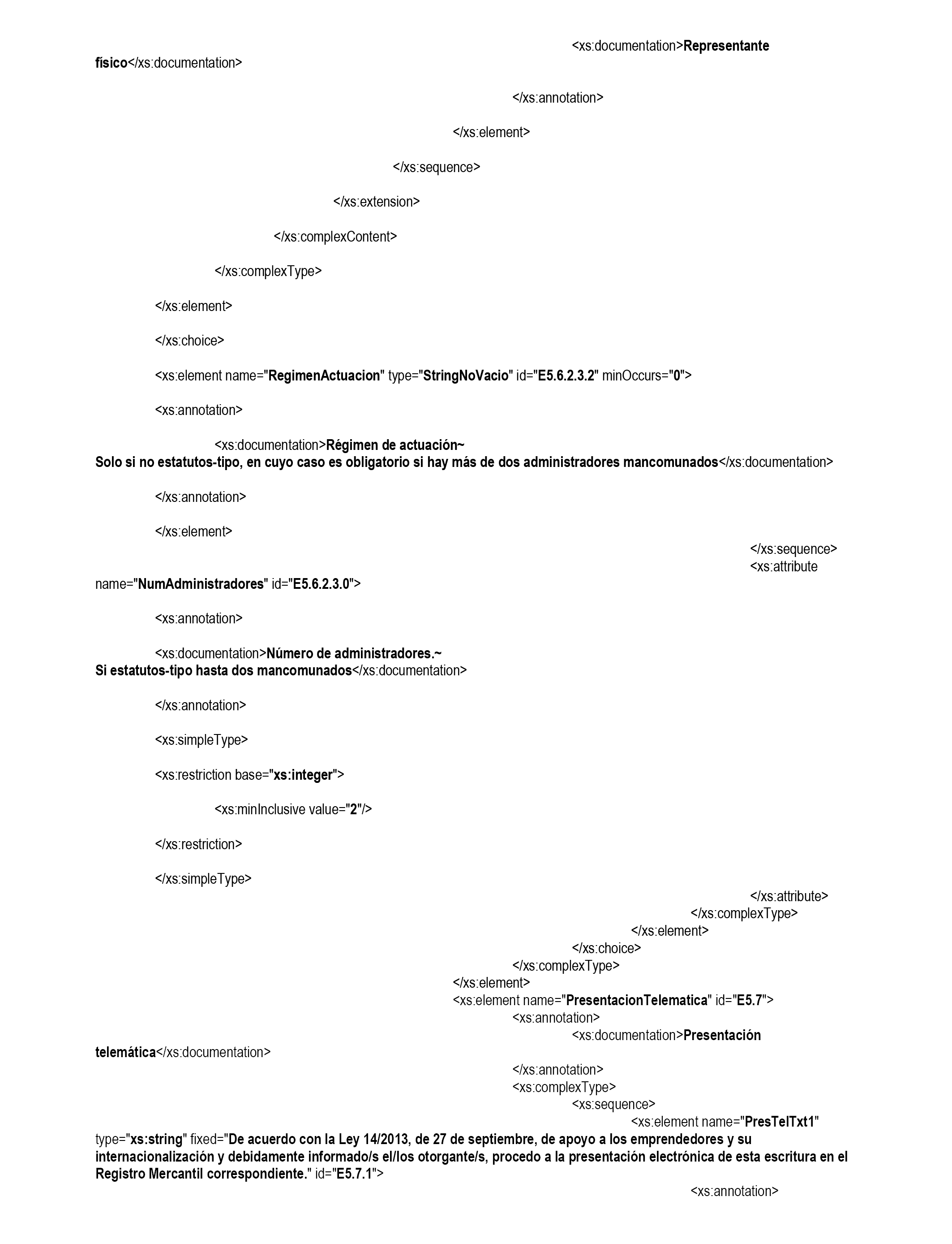 Cada uno de los campos que figuran en el modelo estandarizado deberá contener el dato codificado que corresponde a la numeración situada en el mismo de acuerdo con la relación contenida en el anexo II de esta Orden. Los campos serán completados por el notario de forma que la información estructurada sea electrónicamente tratable. Al efecto, en el Anexo III de esta Orden se incluye la descripción del formato de Escritura Estandarizado mediante un esquema XSD, XML Schema Definition.