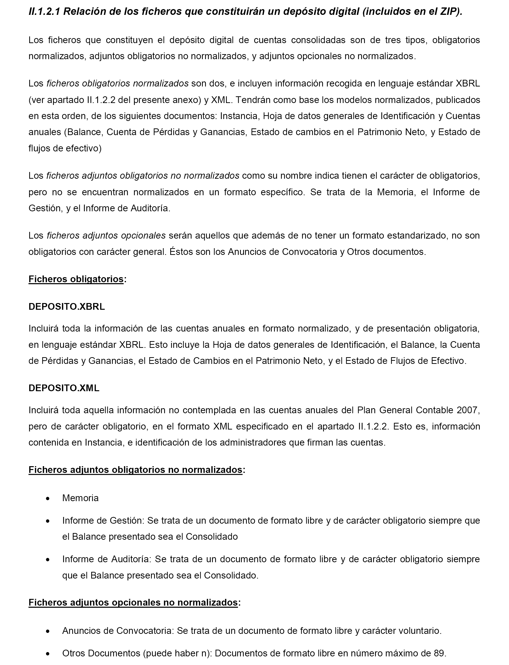 El modelo que se aprueba tiene una doble modalidad, según se utilice para la presentación en el tradicional soporte en papel o bien en soporte electrónico (también denominado informático o digital), facilitando la presentación por vía telemática. Dicho formulario, continúa con el formato ya establecido que incorporaba la taxonomía XBRL, con el fin de reducir en lo posible la carga informativa que recae sobre las empresas e incorporar a España al proceso normalizador mundial, que utiliza este estándar como formato electrónico de la información financiera. La versión oficial de la taxonomía, de acceso libre y uso gratuito, estará disponible para todos los agentes interesados en la página web del Instituto de Contabilidad y Auditoría de Cuentas.