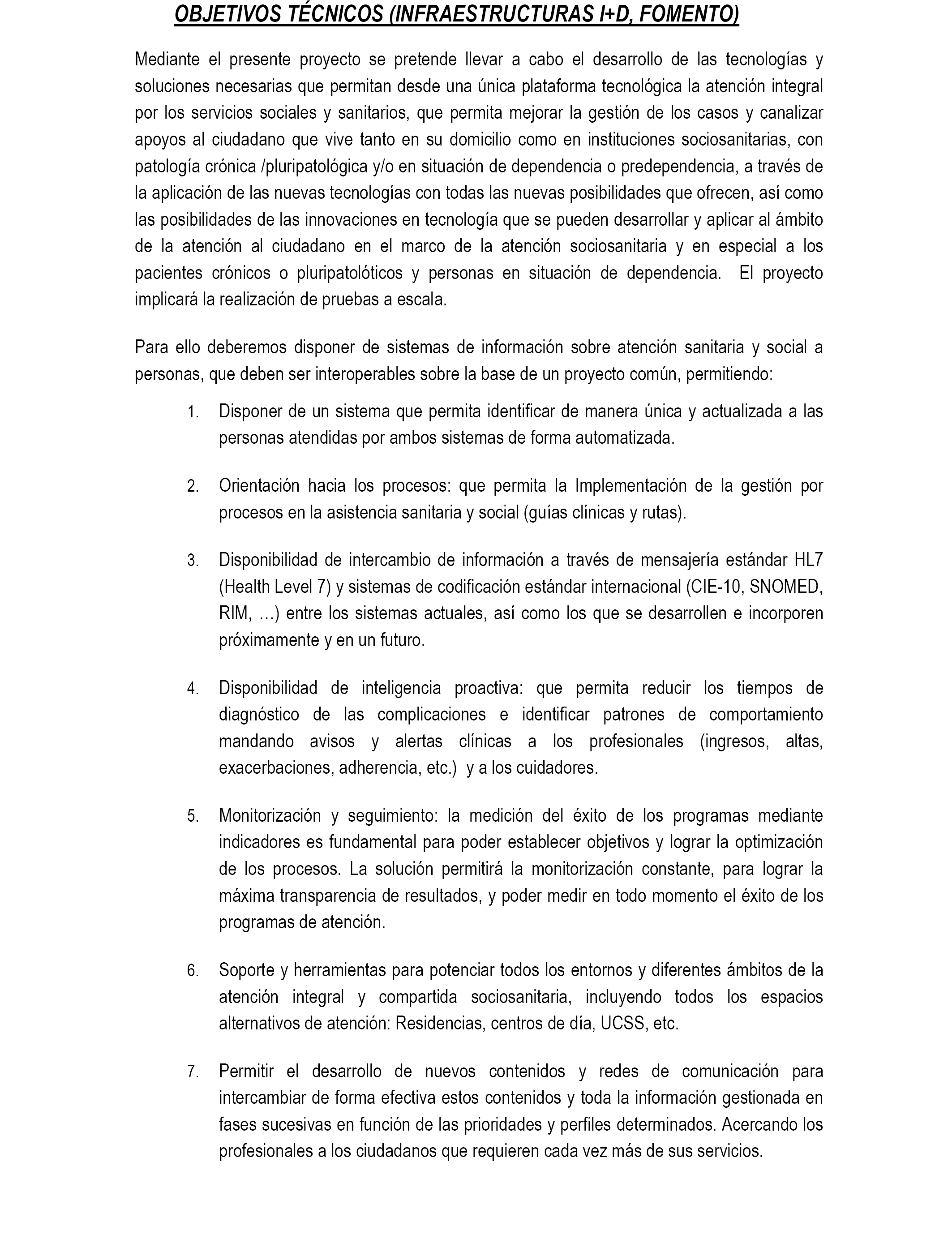10. Que el MINECO valora la contribución del proyecto objeto de ayuda al desarrollo socioeconómico y la competitividad del tejido empresarial del entorno, así como a la integración del sistema ciencia, tecnología, empresa. Igualmente el MINECO ha considerado, dentro de los criterios de selección de operaciones del Fondo Tecnológico, que el proyecto «Desarrollo de una Plataforma Tecnológica de atención sociosanitaria al paciente crónico y personas en situación de dependencia» se enmarca dentro de los contemplados en el objetivo de difundir el conocimiento y de la cooperación público-privada entre agentes científico-tecnológicos y empresas, para tratar de resolver los problemas comunes de nuestras ciudades, apoyando, para ello, a proyectos que estimulen la competitividad empresarial mediante la realización de actividades de I+D+i en regiones de competitividad por parte de la Dirección General de Innovación y Competitividad.