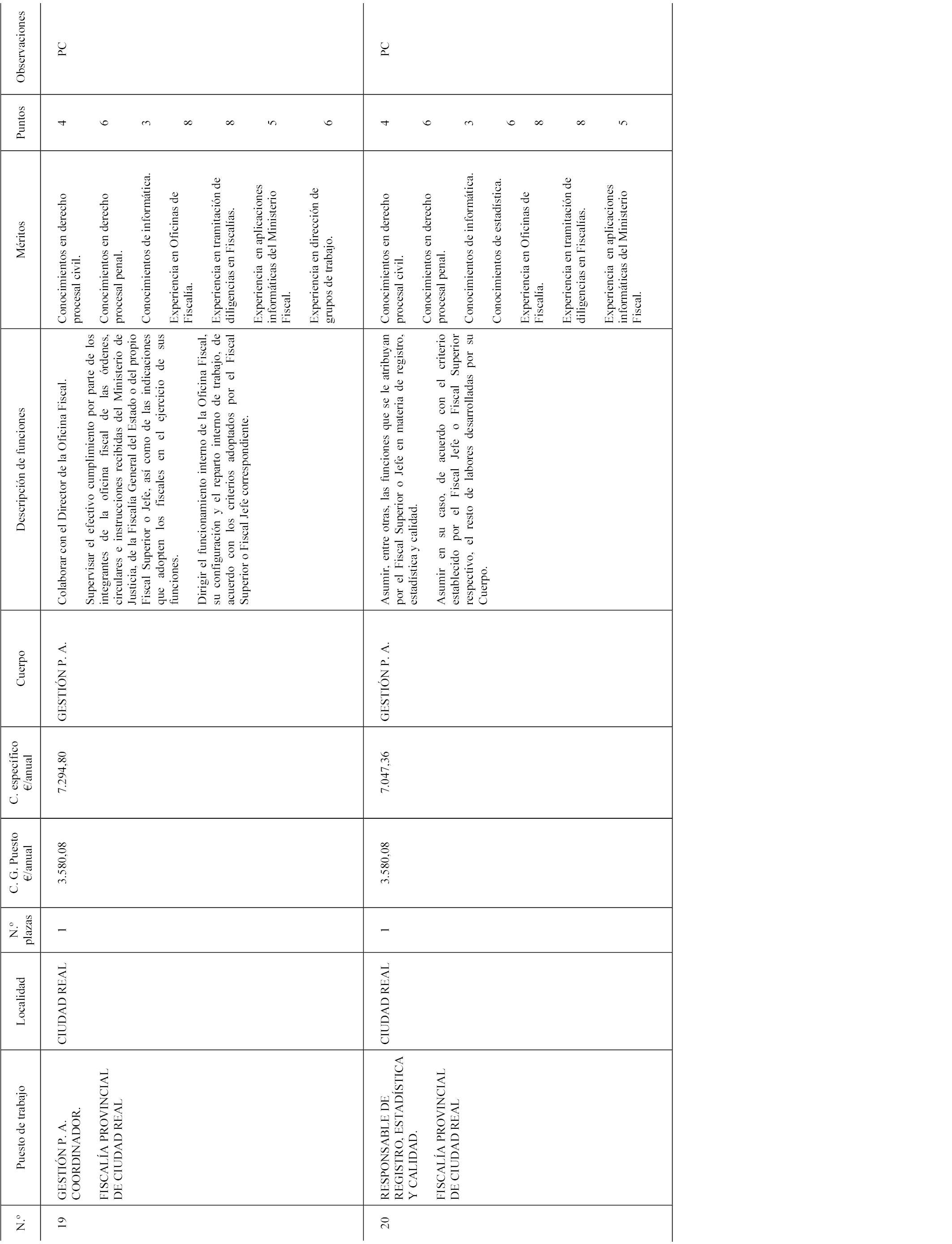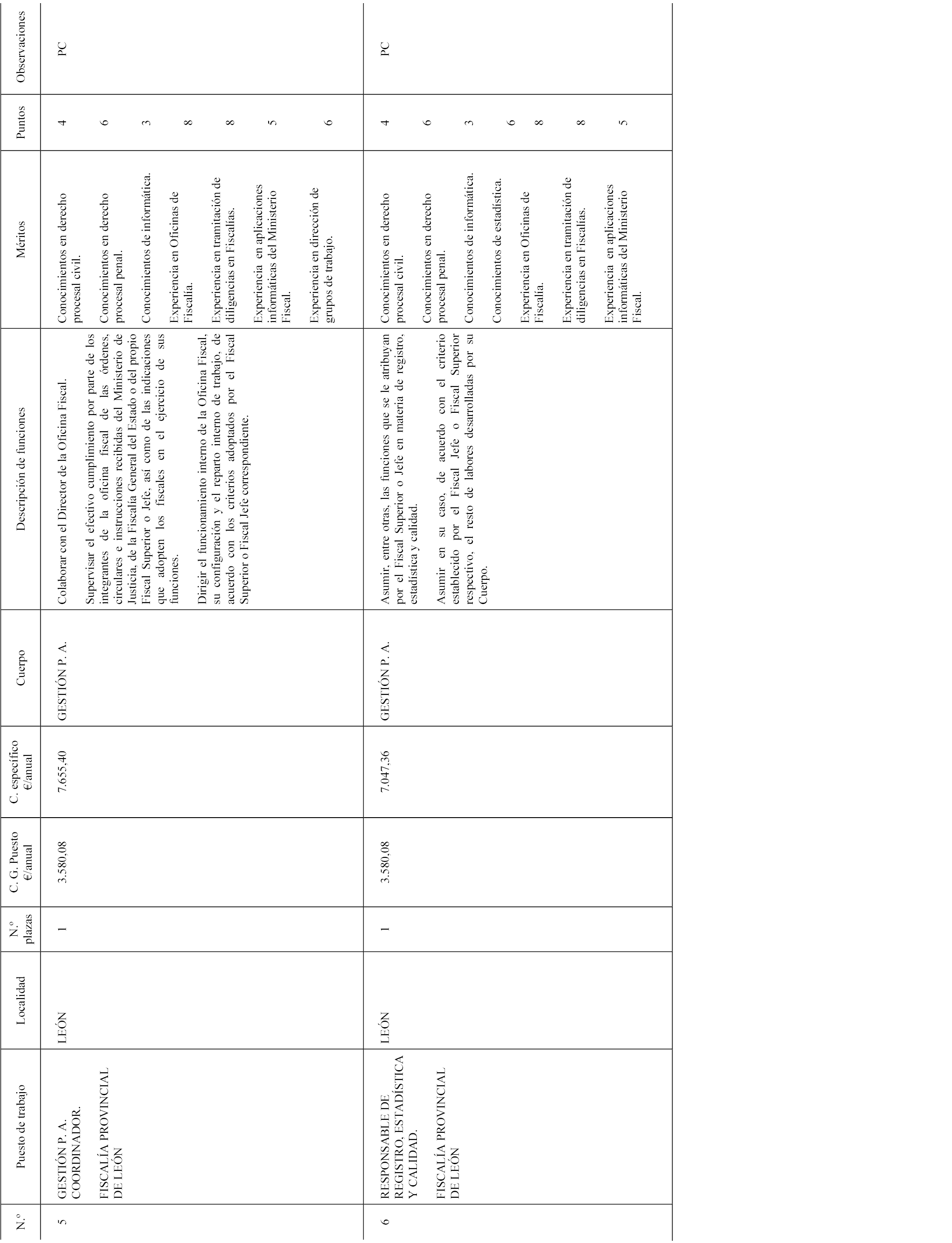 En el citado Anexo se hacen constar los datos referentes a los puestos de trabajo, así como su descripción, con inclusión de las especificaciones derivadas de la naturaleza de la función encomendada a los mismos, y la relación de las principales tareas. Asimismo, se indica el complemento general del puesto, complemento específico, cuerpo al que está adscrito, y los méritos específicos correspondientes.