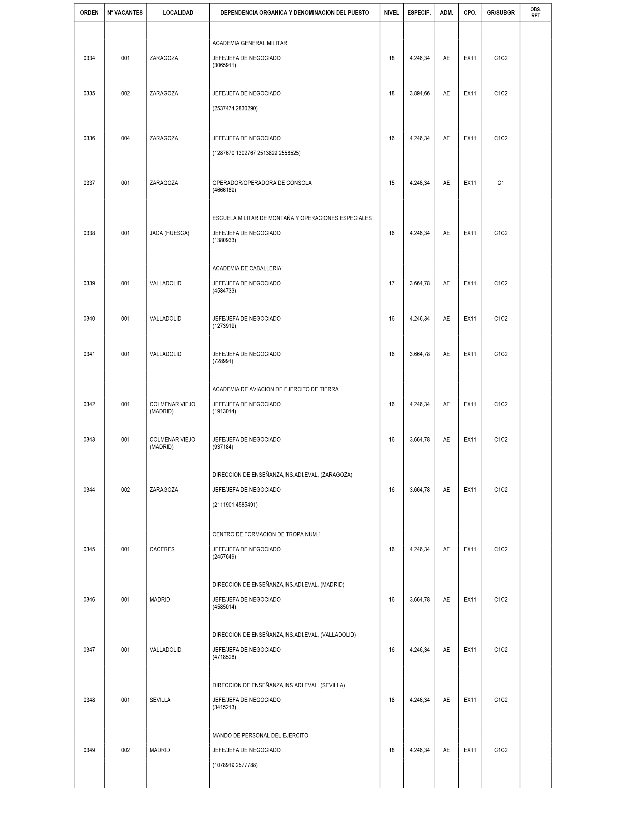 – Certificación de la Unidad de personal que acredite la relación de servicios del cónyuge, su localidad de destino, el puesto que desempeña y la forma y fecha en que lo obtuvo.