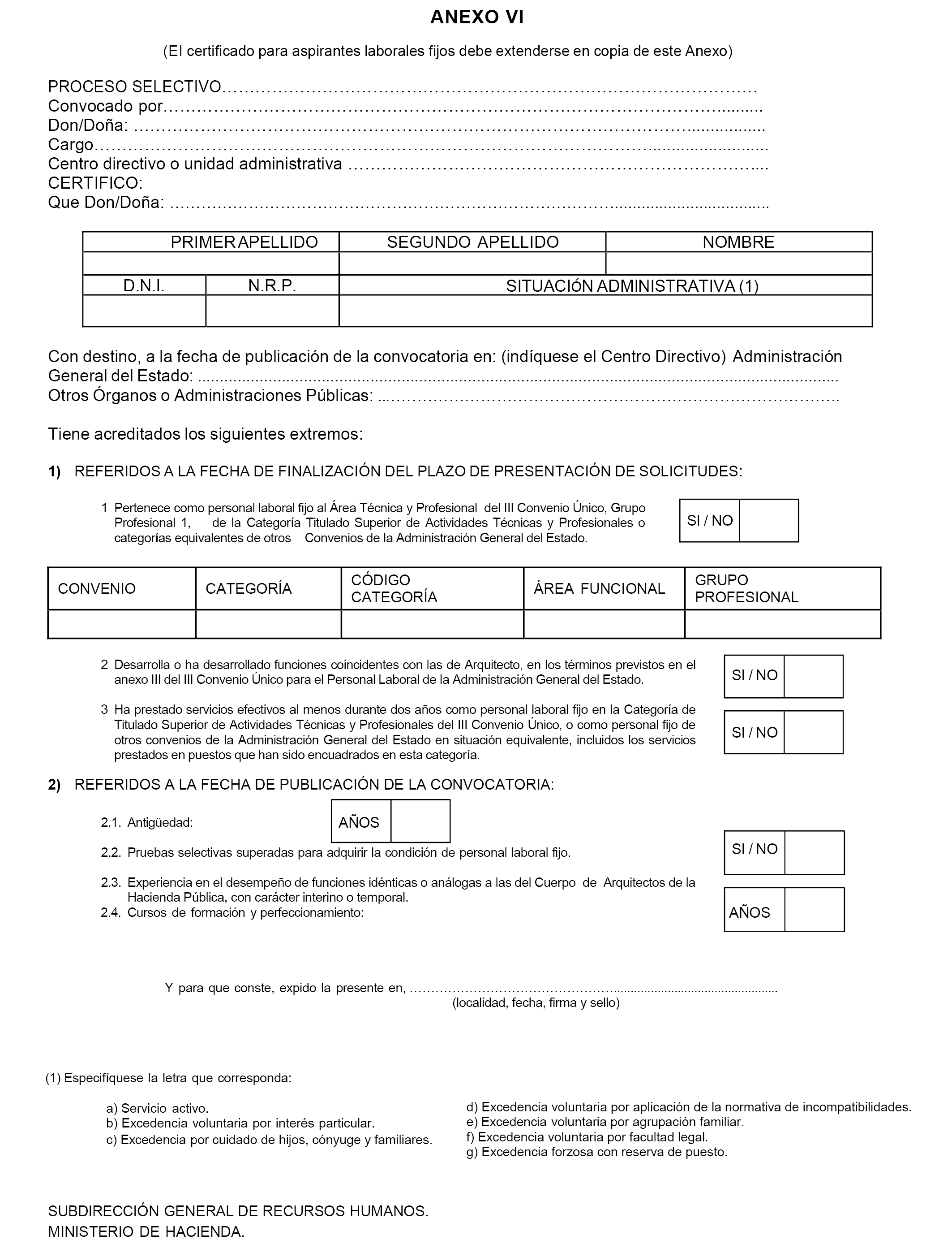 En el recuadro 15, «Cuerpo o Escala», se consignará «Cuerpo de Arquitectos de la Hacienda Pública»; «Código», se consignará «0605»