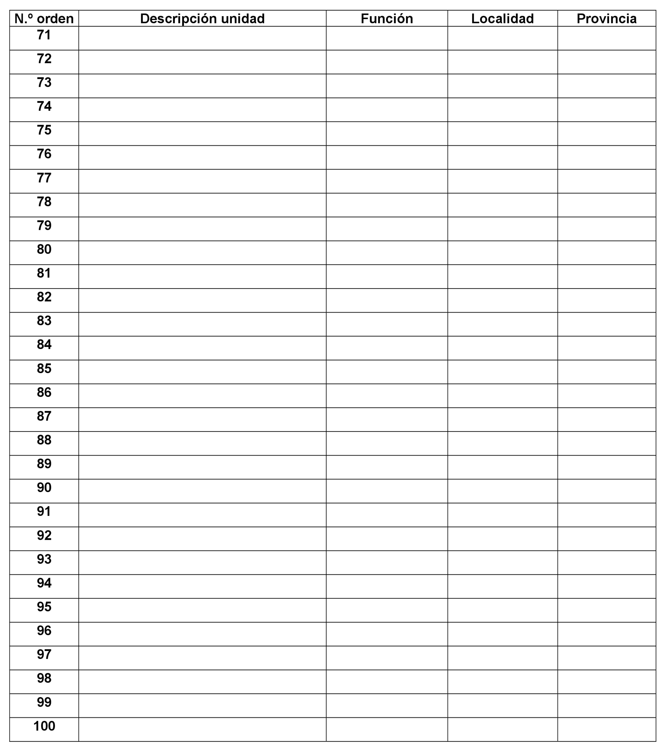 | Descripción Unidad | Función | Localidad | Provincia | N.º de plazas |