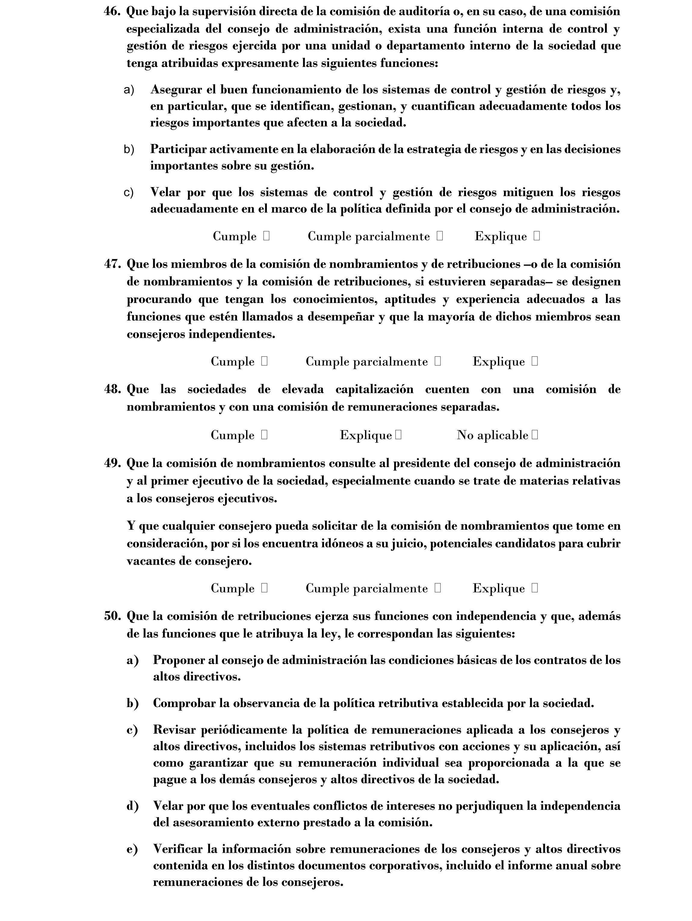 En el apartado B.1 se ha añadido la necesidad de que se informe sobre toda desviación del procedimiento para la aplicación de la política de remuneraciones así como sobre toda excepción temporal que se haya aplicado a dicha política, derivada de circunstancias excepcionales.