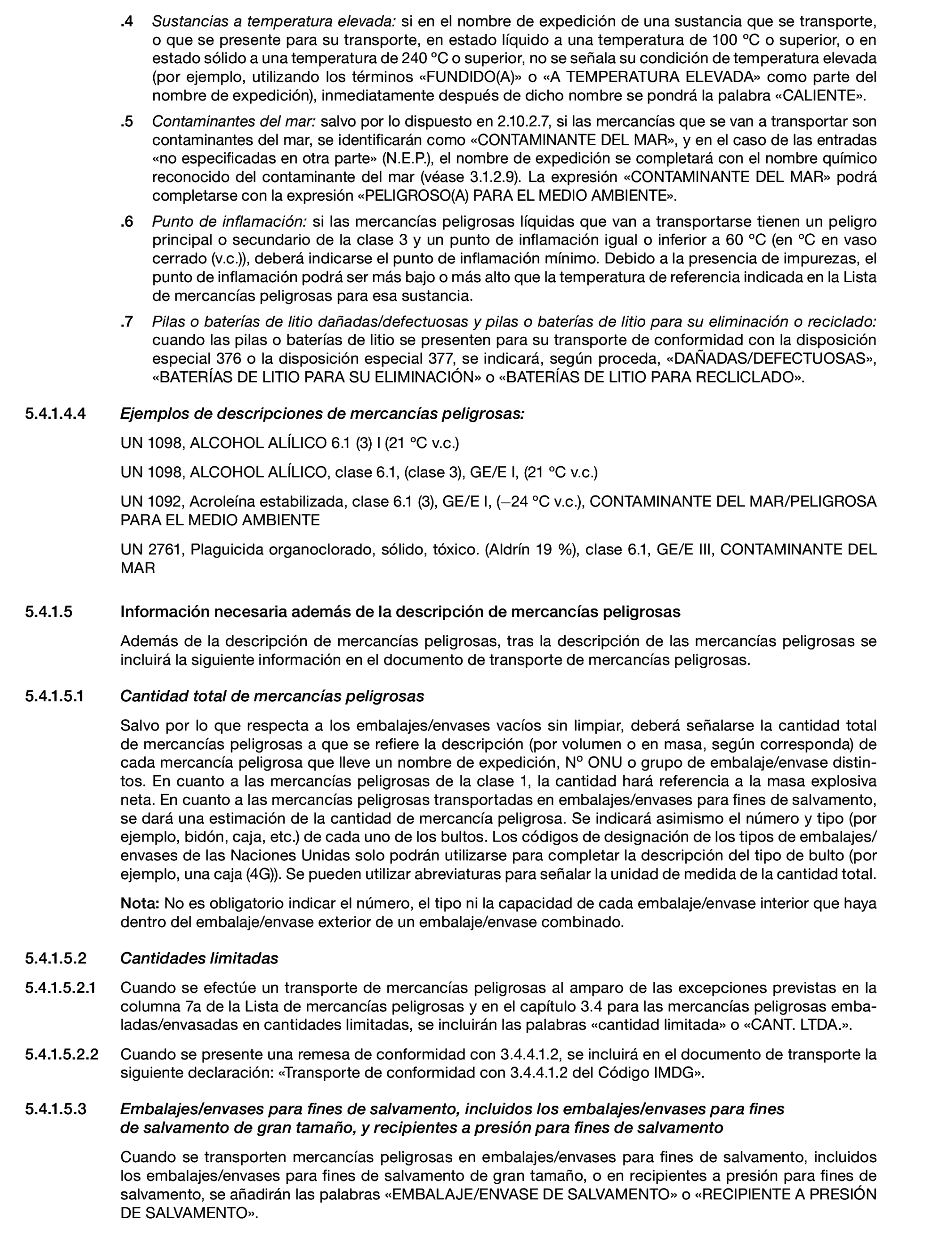 El texto completo del Código IMDG se sustituye por el siguiente: