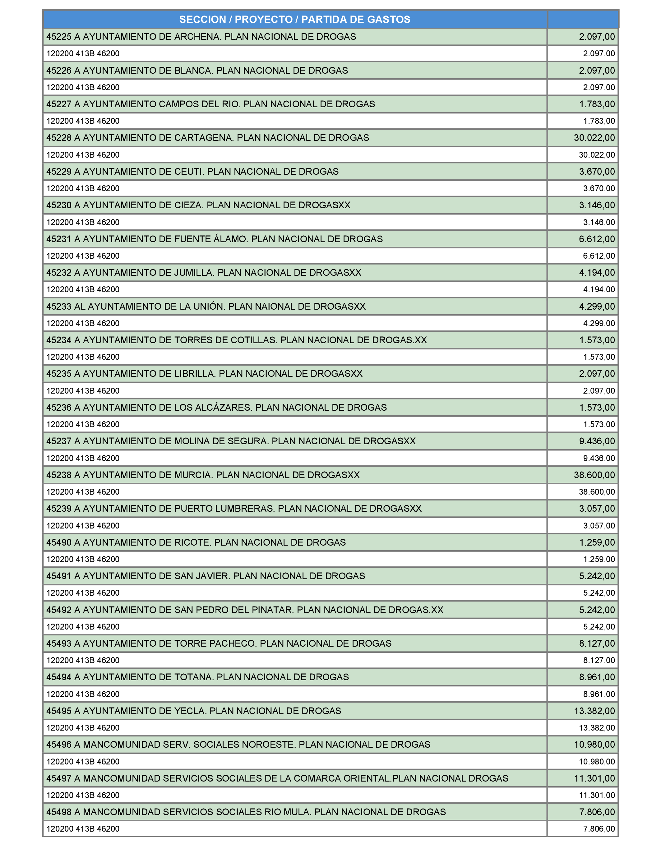 Por último, los Anexos I a VIII hacen referencia, respectivamente, a los proyectos de gasto de subvenciones nominativas de la Administración General y sus organismos autónomos; a los módulos económicos de distribución de fondos públicos para el sostenimiento de los centros concertados; a las subvenciones nominativas del Servicio Murciano de Salud; a las subvenciones nominativas de la Entidad Regional de Saneamiento y Depuración de Aguas Residuales; a las subvenciones nominativas del Instituto de Industrias Culturales y de las Artes de la Región de Murcia; a las actuaciones de la Ley 4/1990, de 11 de abril, de Medidas de Fomento del Patrimonio Histórico de la Región de Murcia; a las actuaciones de la Ley 3/2021, de 29 de julio, de Servicios Sociales de la Región de Murcia; y a los proyectos de gasto correspondientes a los créditos que amparan los procedimientos de emergencia ciudadana contemplados en el Anexo de la Ley 4/2016, de 15 de abril, de regulación de los procedimientos de emergencia ciudadana en la Administración de la Región de Murcia y en la presente ley.
