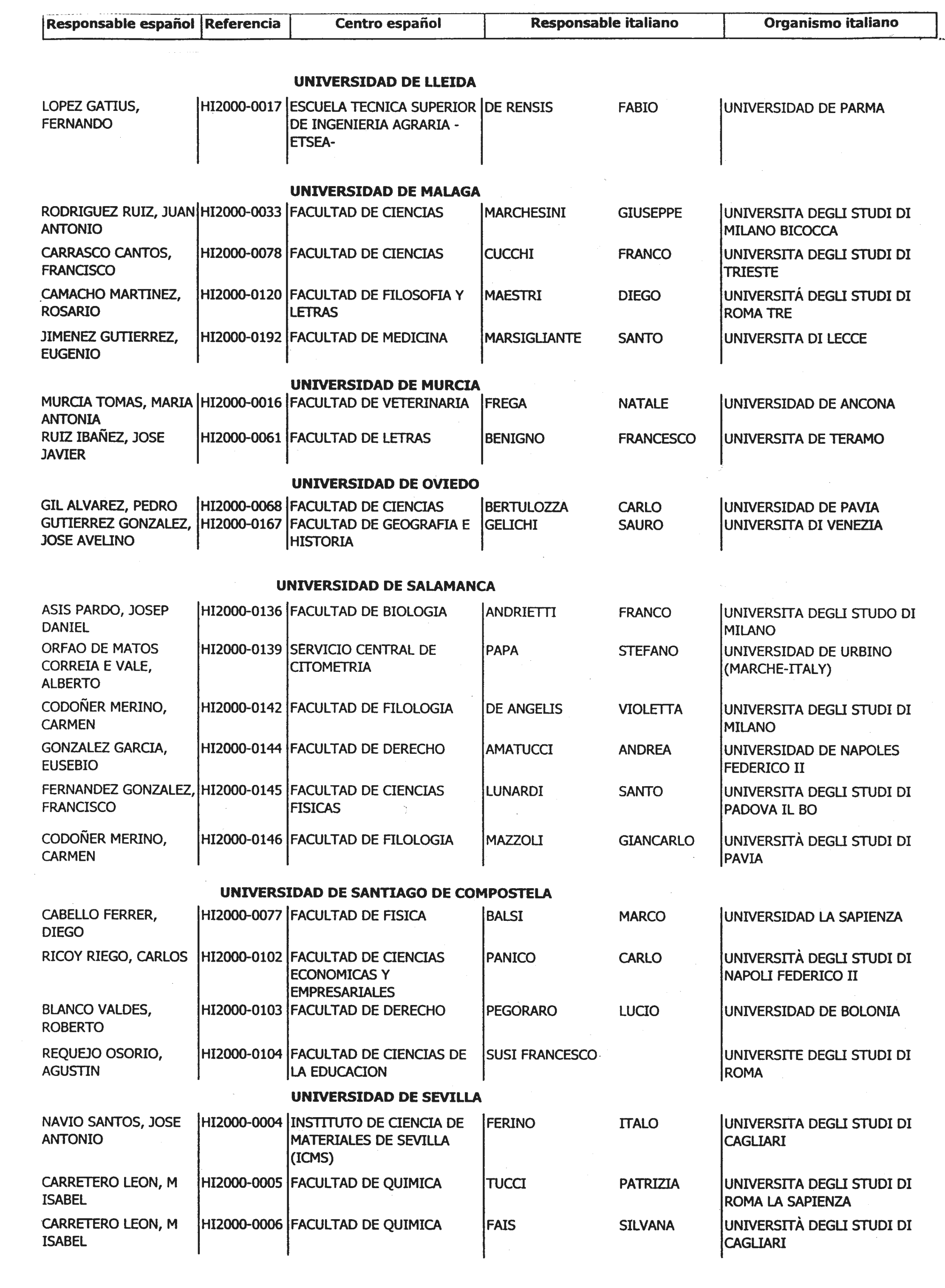 Por Orden de 18 de enero de 2001 («Boletín Oficial del Estado» del 25), del Ministerio de la Presidencia, se convocaba, entre otros, el Programa de Acciones Integradas de Investigación Científica y Técnica entre España e Italia, para el período 1 de enero de 2001 al 31 de diciembre de 2002.