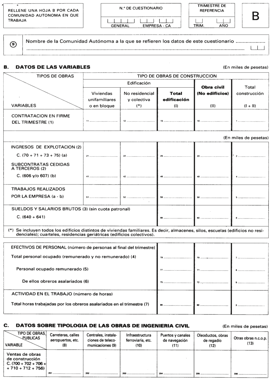 El directorio de las empresas a encuestar estará formado por empresas constructoras con actividad en Cataluña, pertenecientes a la División 45 de la Clasificación Nacional de Actividades Económicas (CNAE–93).