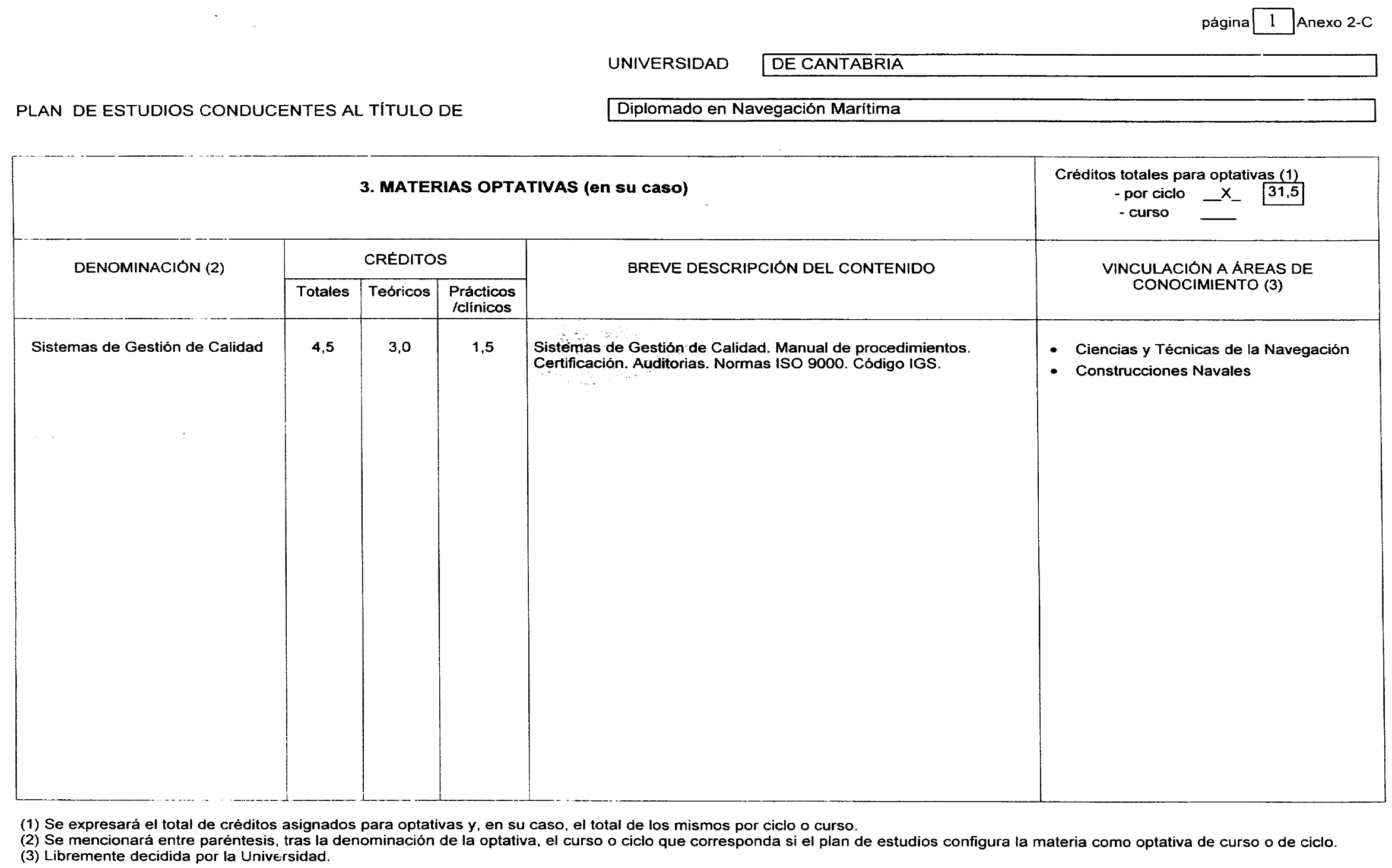 De conformidad con lo dispuesto en el artículo 10.2 del Real Decreto 1497/1987, de 27 de noviembre, este Rectorado ha resuelto publicar la modificación del plan de estudios conducente al título de Diplomado en Navegación Marítima («Boletín Oficial del Estado» de 5 de mayo de 1999 y 20 de noviembre de 2001), la cual ha sido homologada por acuerdo de la Comisión Académica del Consejo de Coordinación Universitaria en su reunión del día 17 de junio de 2003.