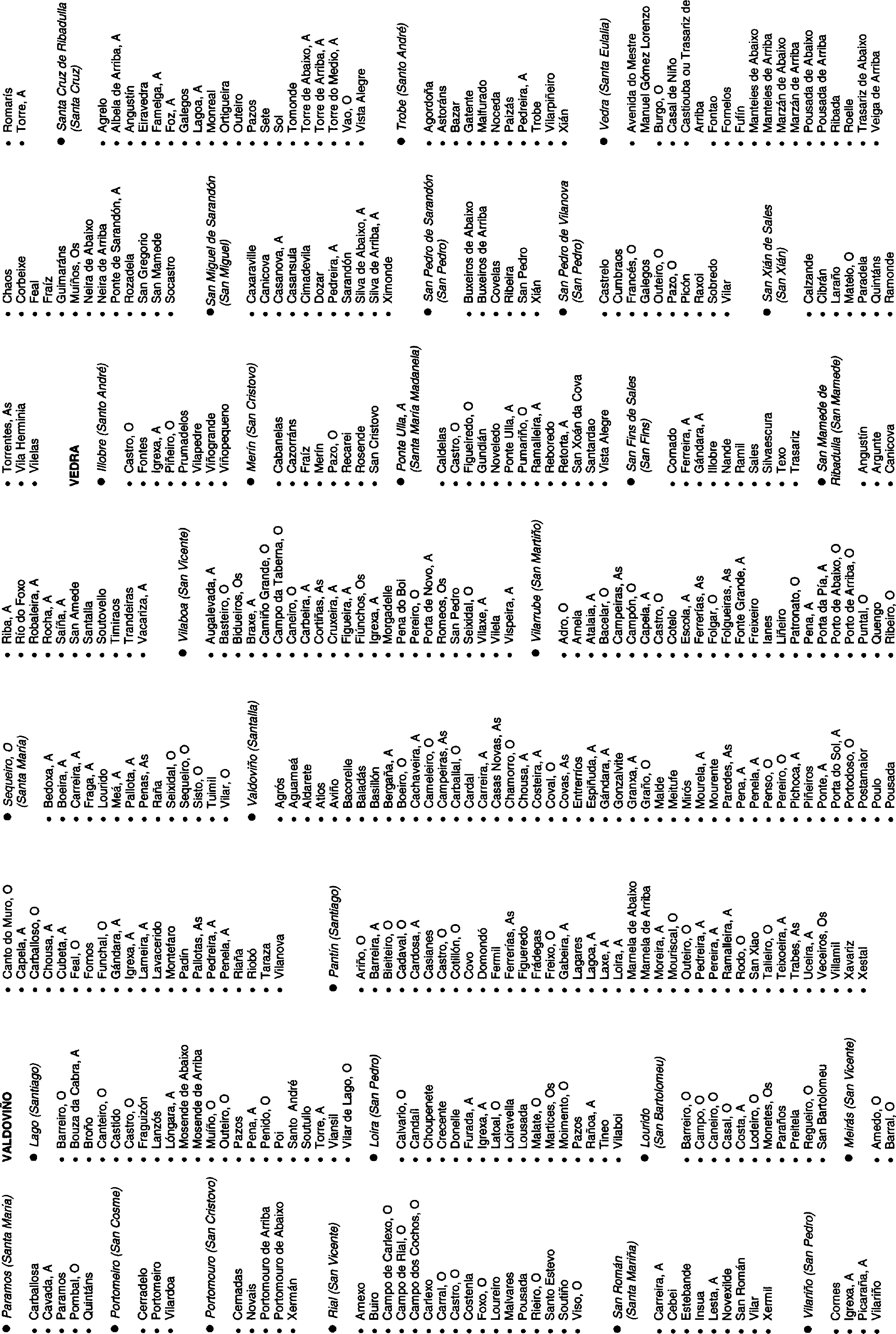 La Ley 3/1983, de 15 de junio, de normalización lingüística, dispone en su artículo 10 que los topónimos de Galicia tendrán como única forma oficial la gallega. El mismo artículo establece en su número 2 que corresponde a la Xunta de Galicia la determinación de los nombres oficiales de los municipios, de los territorios, de los núcleos de población, de las vías de comunicación interurbanas y de los topónimos de Galicia.
