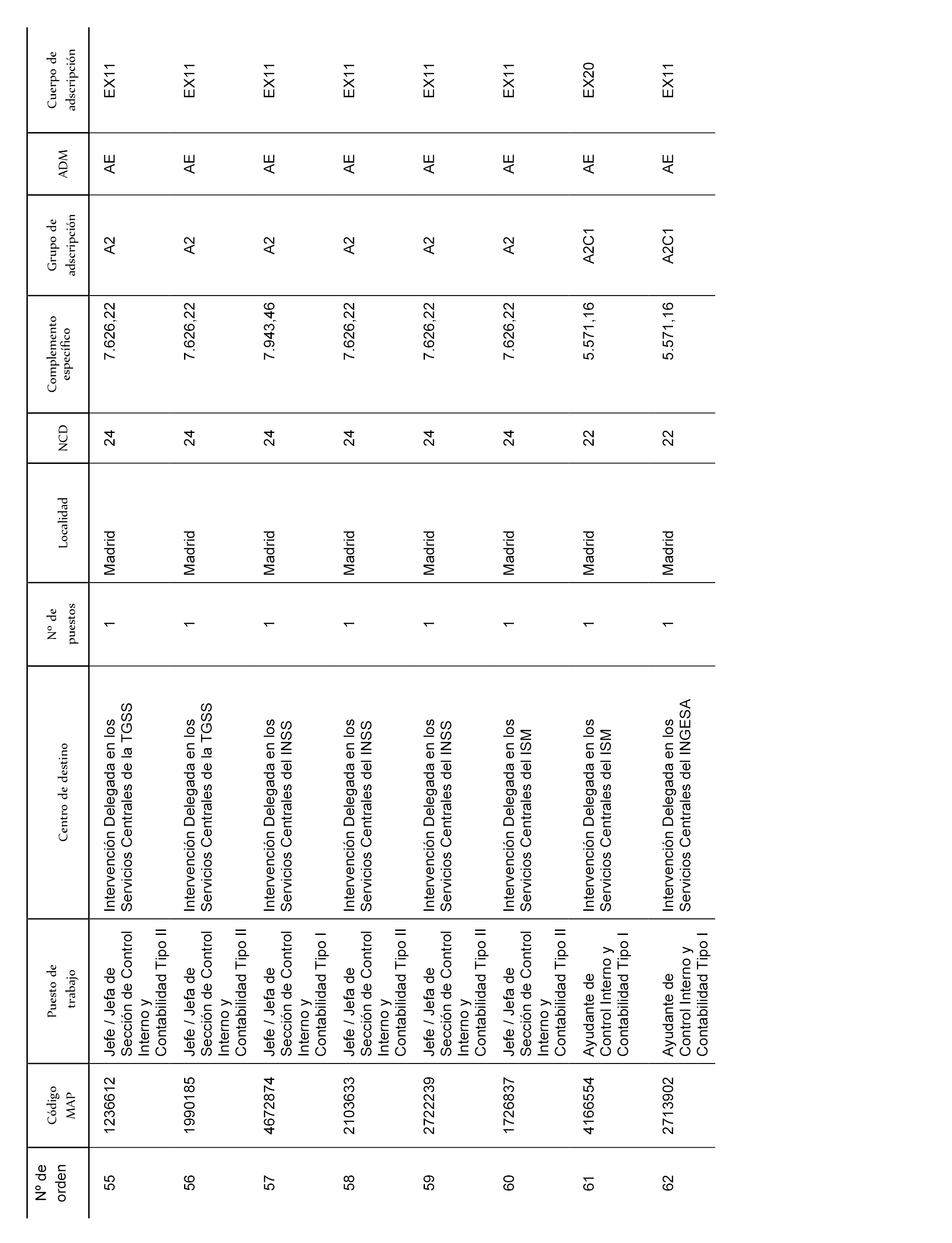 A este respecto se aclara que todos los puestos de trabajo incluidos en las relaciones de puestos de trabajo de la Intervención General de la Seguridad Social están adscritos a la Secretaría de Estado de la Seguridad Social del Ministerio de Empleo y Seguridad Social, aunque las funciones de intervención se ejerzan en el ámbito de Entidades gestoras adscritas a otros Departamentos.
