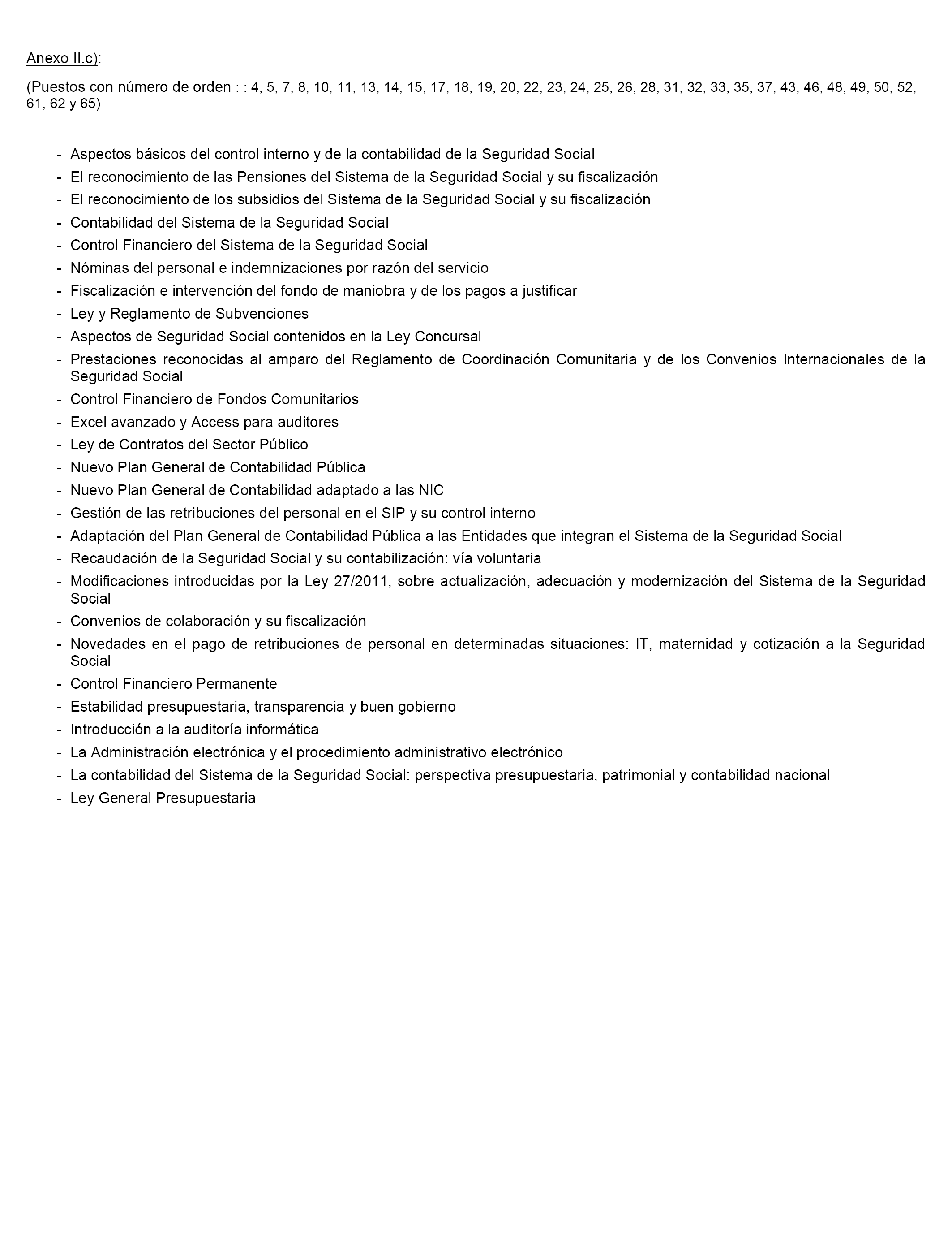 Se valorarán los cursos organizados y convocados por la Intervención General de la Seguridad Social y demás Entidades Gestoras y Servicios Comunes de la Seguridad Social o por el Instituto Nacional de Administración Pública, así como los organizados y convocados en el marco de los Acuerdos de Formación para el Empleo de las Administraciones Públicas y centros oficiales de idiomas, siempre que de la denominación del curso y de su contenido se deduzca la similitud o concordancia con los enumerados en el anexo II, a la vista del programa aportado por el concursante.