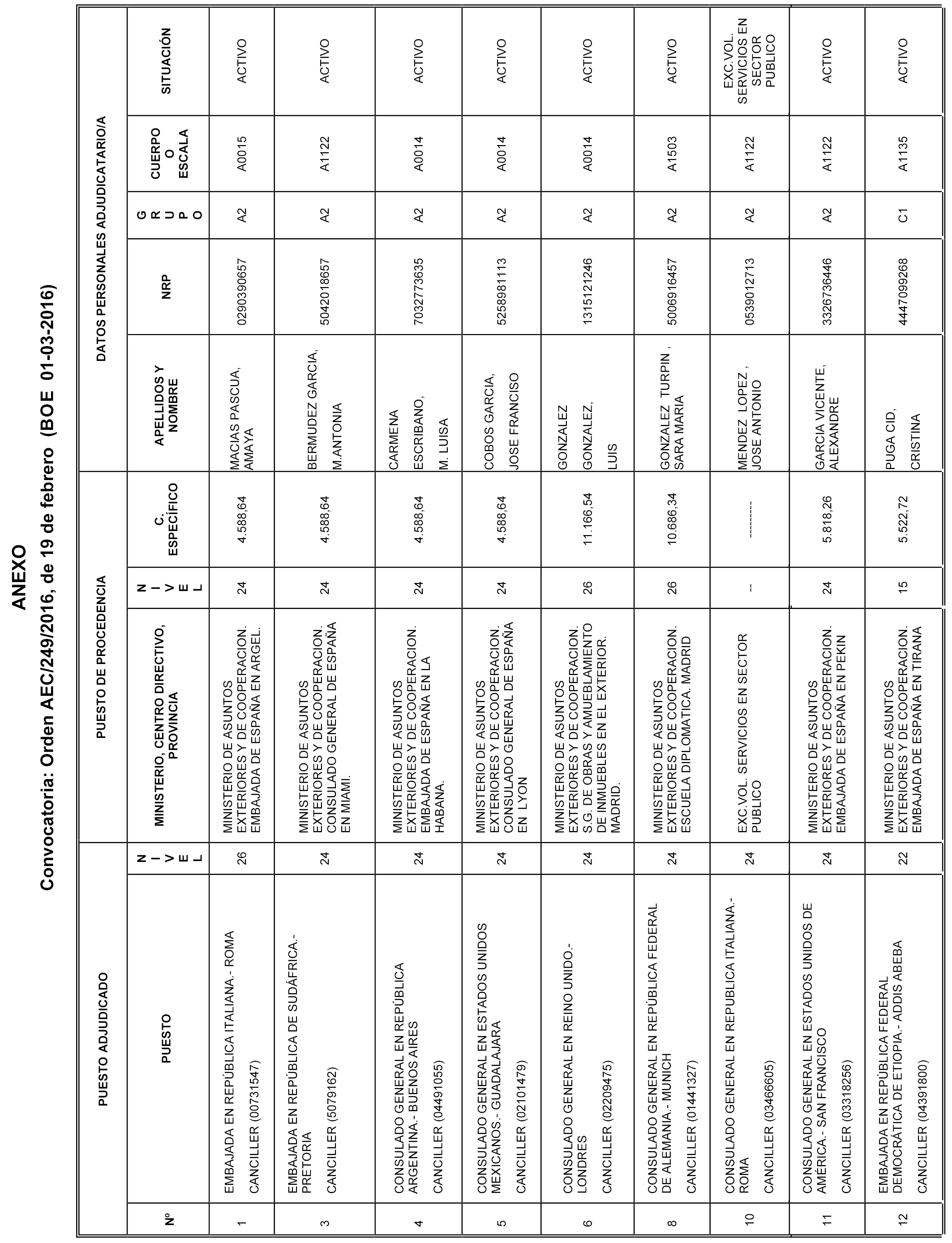 Por Orden AEC/249/2016, de 19 de febrero, se anunció convocatoria para la provisión, por el sistema de libre designación, de puestos de trabajo en el Ministerio de Asuntos Exteriores y de Cooperación.