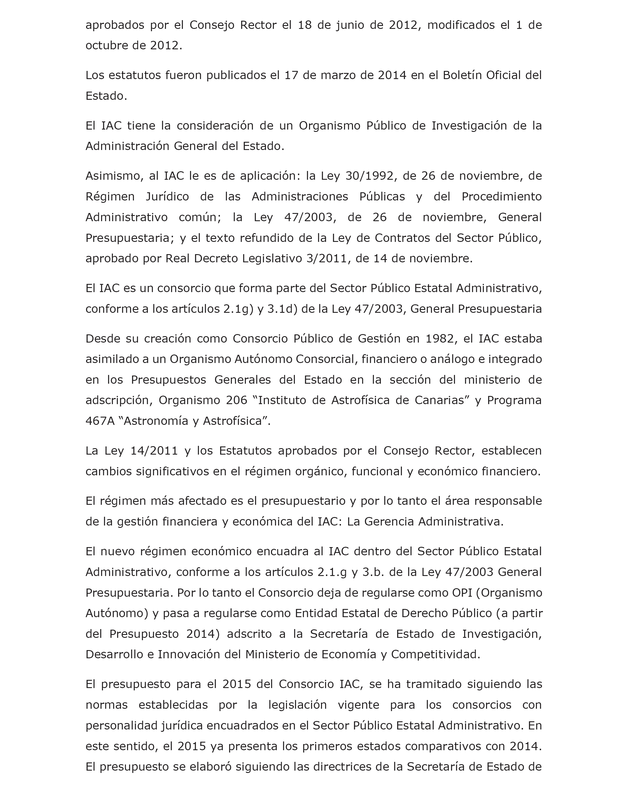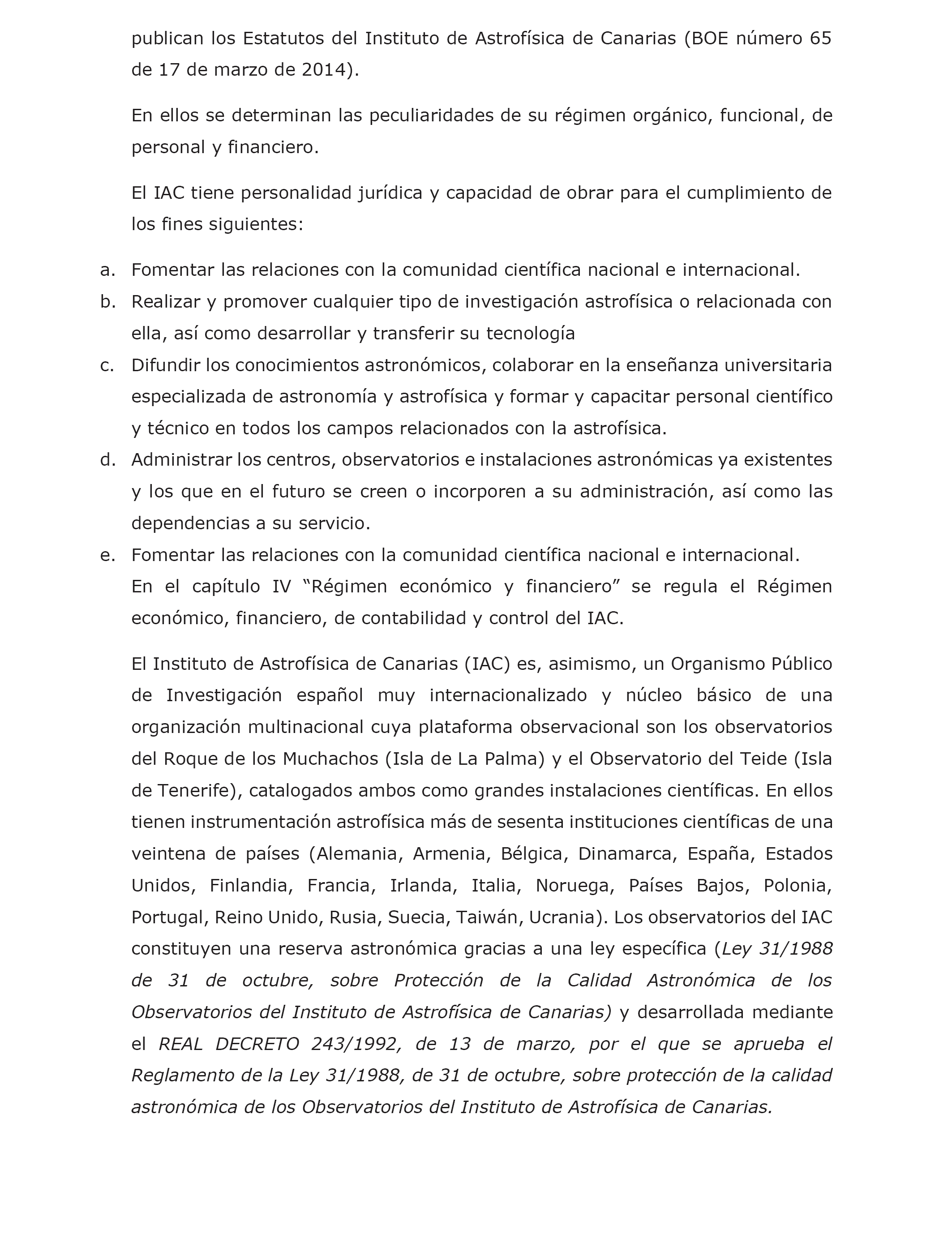 Conforme a lo previsto en la Regla 38 de la Orden EHA/2045/2011, de 14 de julio, por la que se aprueba la instrucción de contabilidad para la Administración Institucional del Estado y en la disposición adicional primera de la Resolución de 28 de mayo de 2012, de la Intervención General de la Administración del Estado, por la que se determina el contenido mínimo de la información a publicar en el «Boletín Oficial del Estado» por las Entidades a las que les sea de aplicación la Instrucción de Contabilidad para la Administración Institucional del Estado, el Instituto de Astrofísica de Canarias debe publicar sus cuentas anuales.
