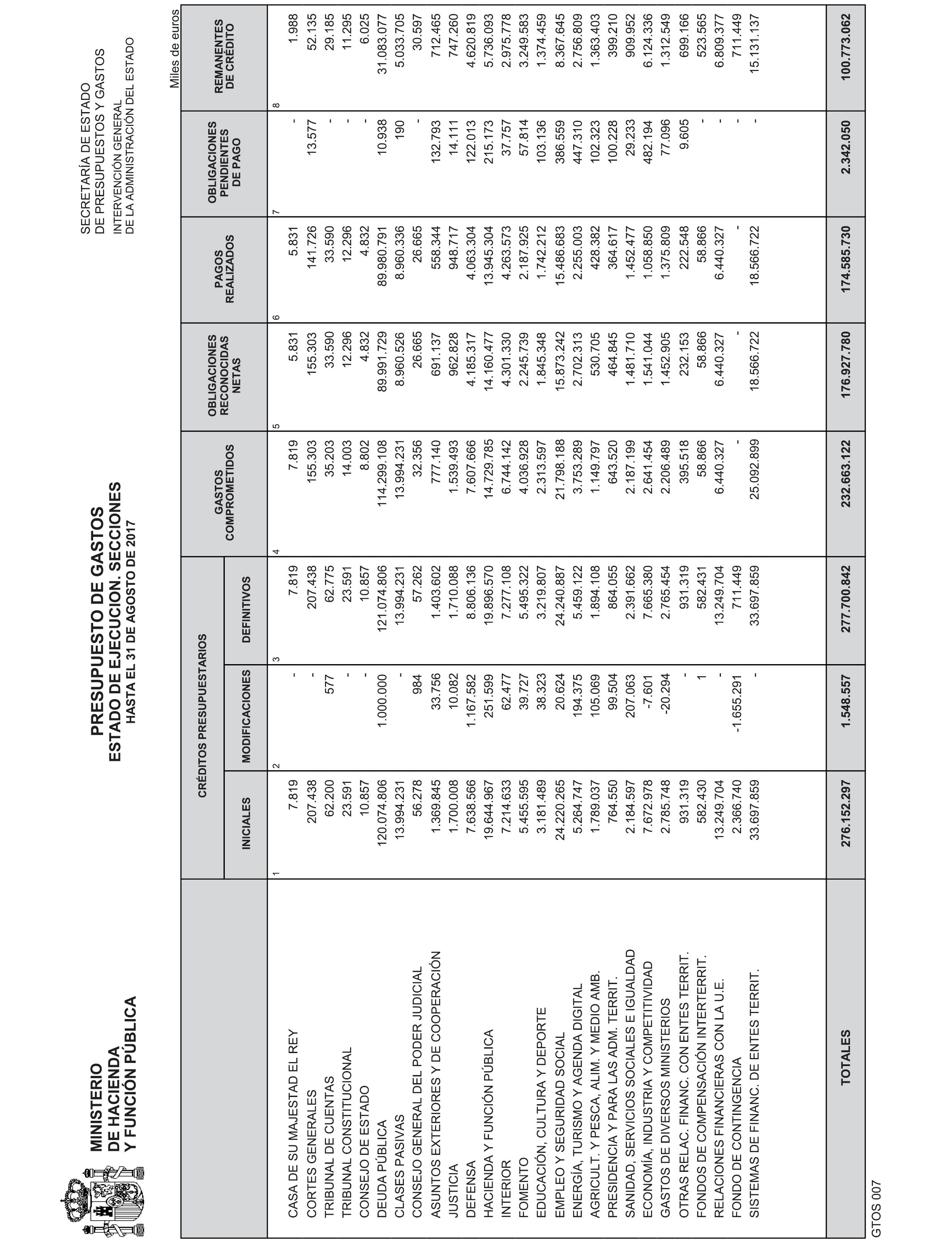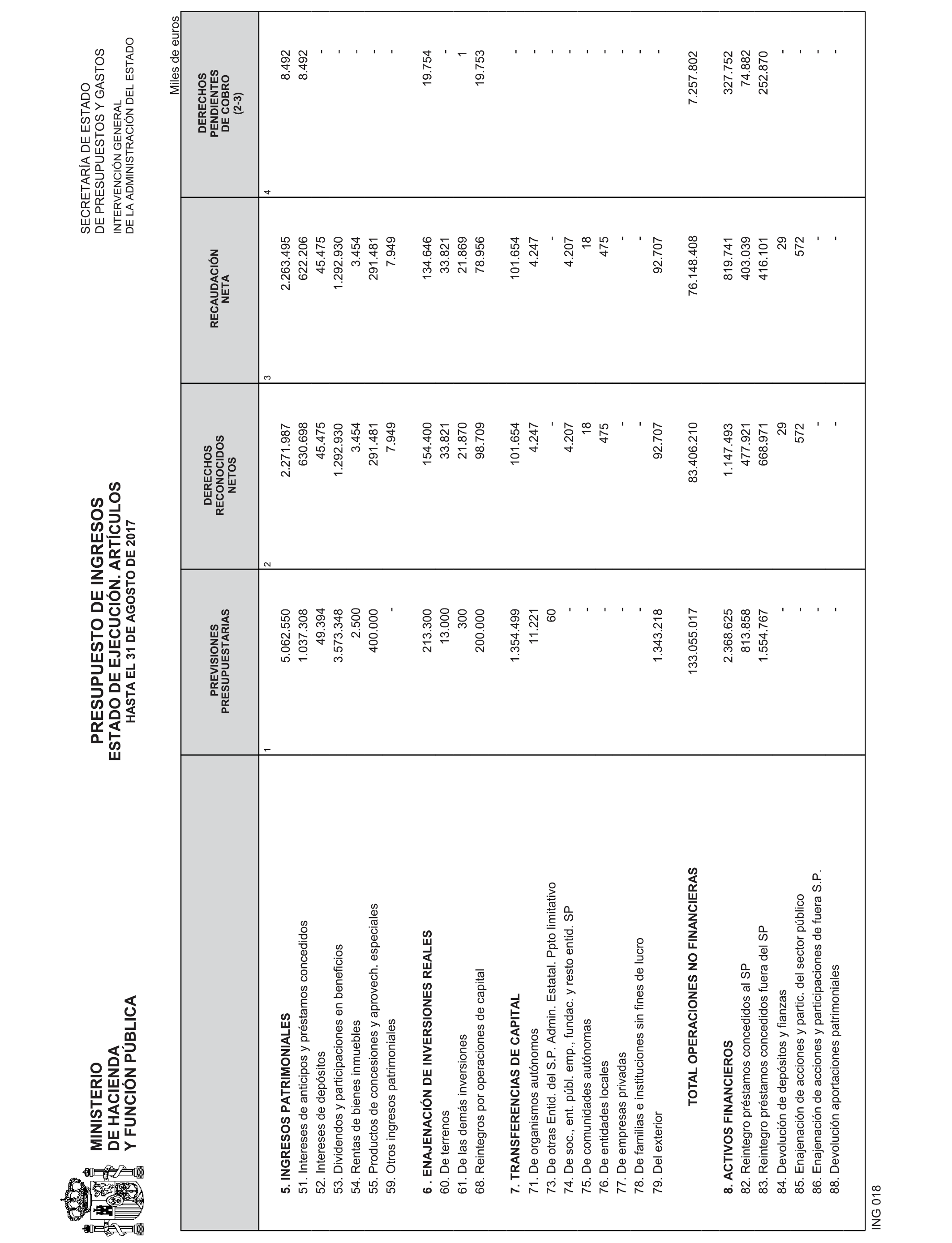 En aplicación de lo dispuesto en el artículo 136 de la Ley General Presupuestaria se hacen públicas las «Operaciones de ejecución del Presupuesto del Estado y de sus modificaciones y operaciones de Tesorería» correspondientes al mes de agosto de 2017.