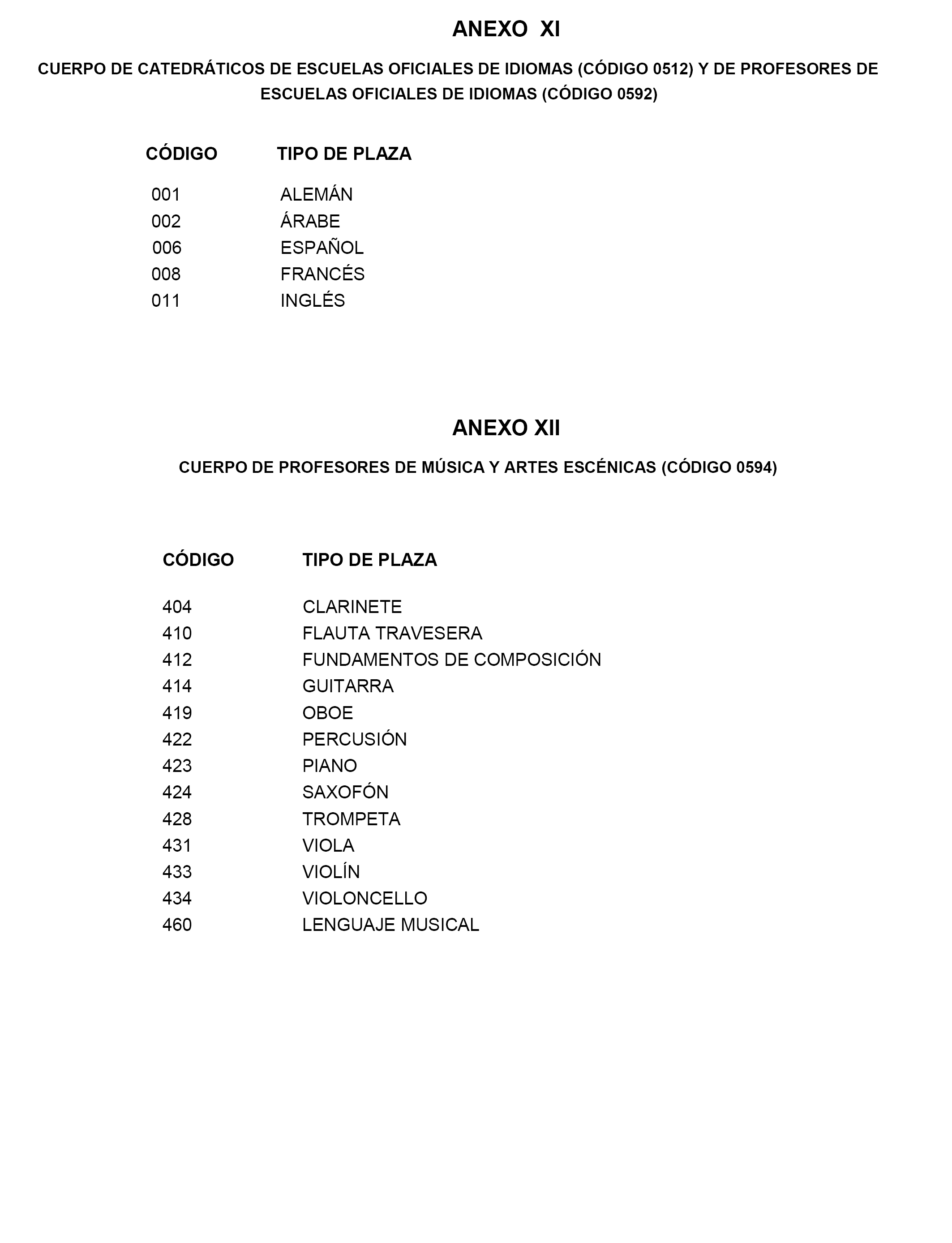 594.–Profesores de Música y Artes Escénicas.