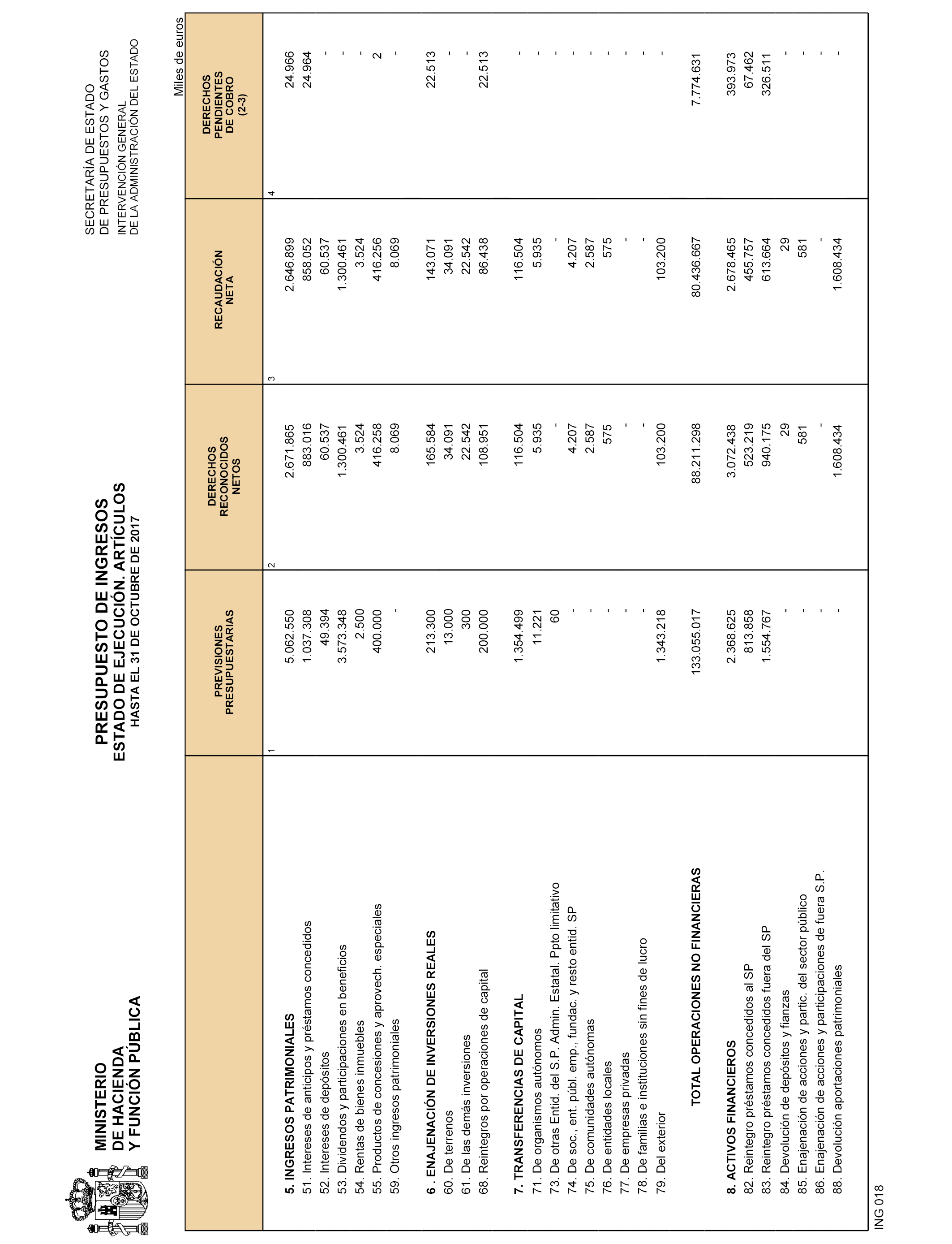 En aplicación de lo dispuesto en el artículo 136 de la Ley General Presupuestaria se hacen públicas las «Operaciones de ejecución del Presupuesto del Estado y de sus modificaciones y operaciones de Tesorería» correspondientes al mes de octubre de 2017.