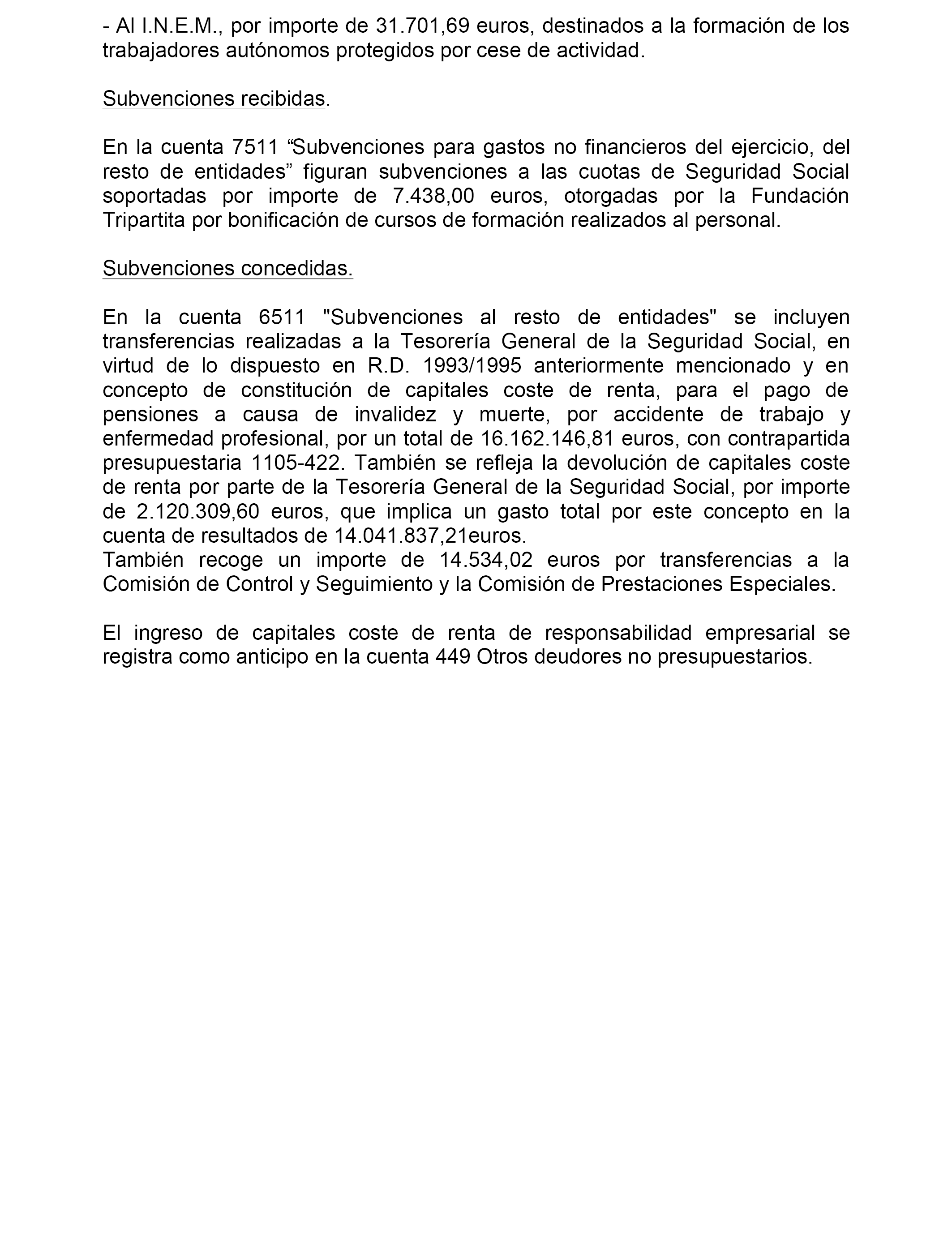 Las cuentas anuales completas y su correspondiente informe de auditoría de cuentas están disponibles en la página web de la Seguridad Social (www.seg-social.es).