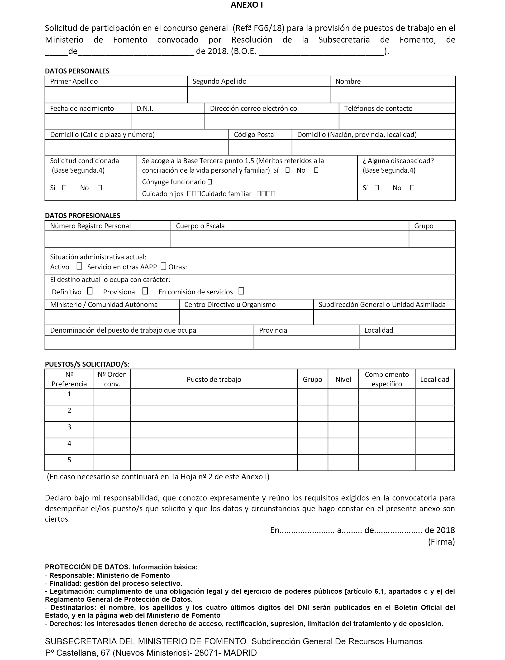Por todo ello, de acuerdo con lo dispuesto en el artículo 20 de la Ley 30/1984, de 2 de agosto, así como en el artículo 40.1 del Reglamento General de Ingreso del Personal al servicio de la Administración general del Estado y de Provisión de Puestos de Trabajo y Promoción Profesional de los Funcionarios Civiles de la Administración general del Estado, aprobado por Real Decreto 364/1995, de 10 de marzo, previa autorización de la Secretaría de Estado de Función Pública, y en uso de las facultades atribuidas por el artículo 63 de la Ley 40/2015, de 1 de octubre, de Régimen Jurídico del Sector Público, esta Subsecretaría ha resuelto convocar concurso general (Ref. FG6/18) para cubrir las vacantes que se relacionan en el Anexo A ,Puestos, y Anexo B ,Resultas, de esta Resolución, todo ello con arreglo a las siguientes bases: