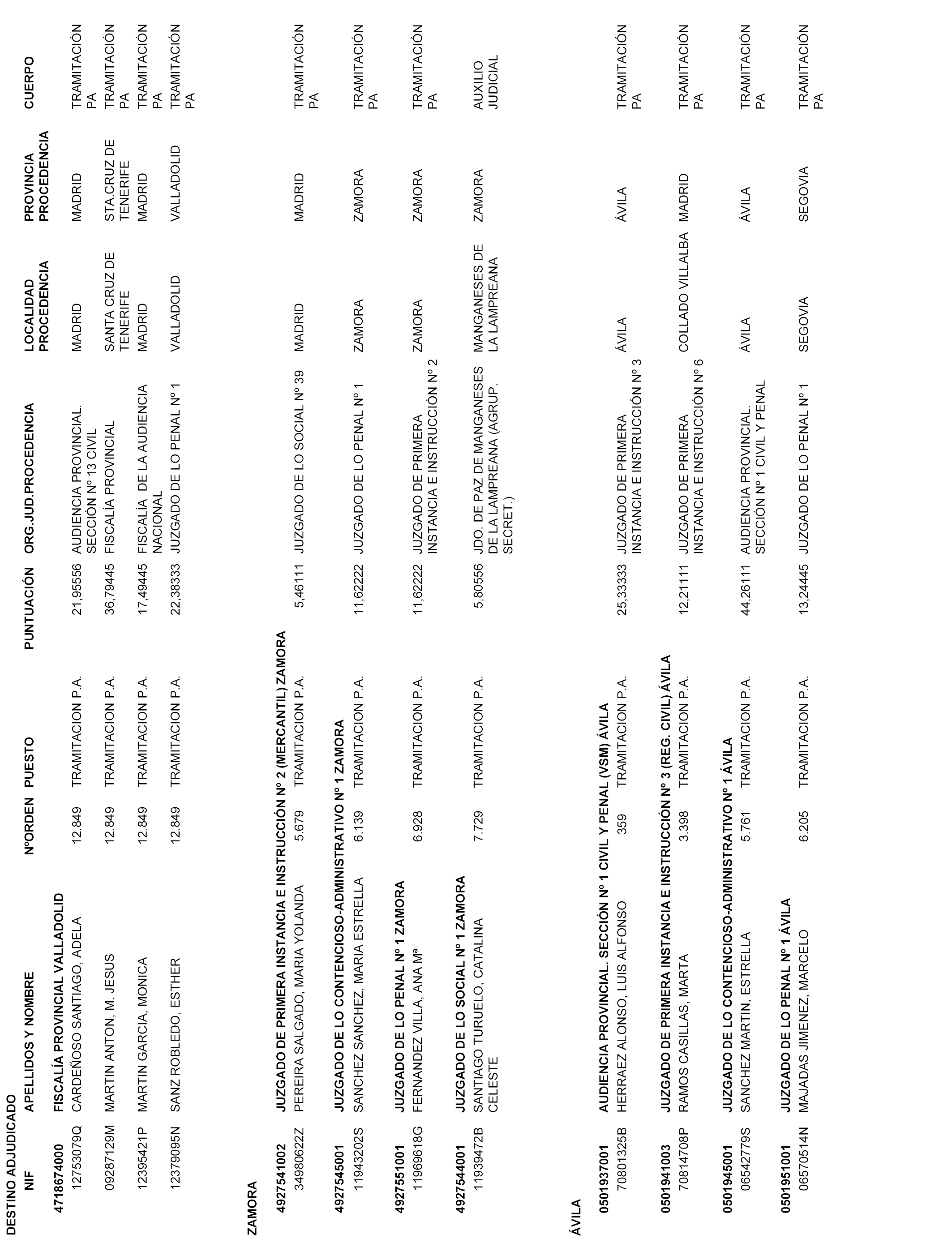 Excluir del concurso de traslados a los funcionarios que se relacionan en la página Web del Ministerio de Justicia (www.mjusticia.gob.es).