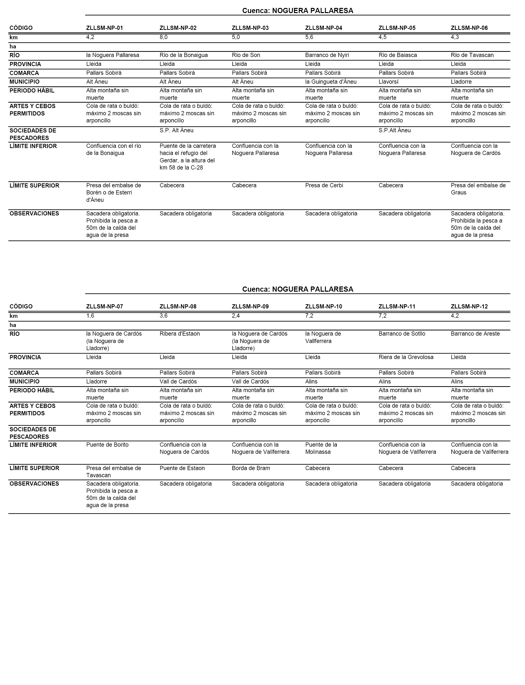 En las zonas de pesca controlada de alta montaña de La Noguera Ribagorçana, los periodos hábiles son los siguientes: