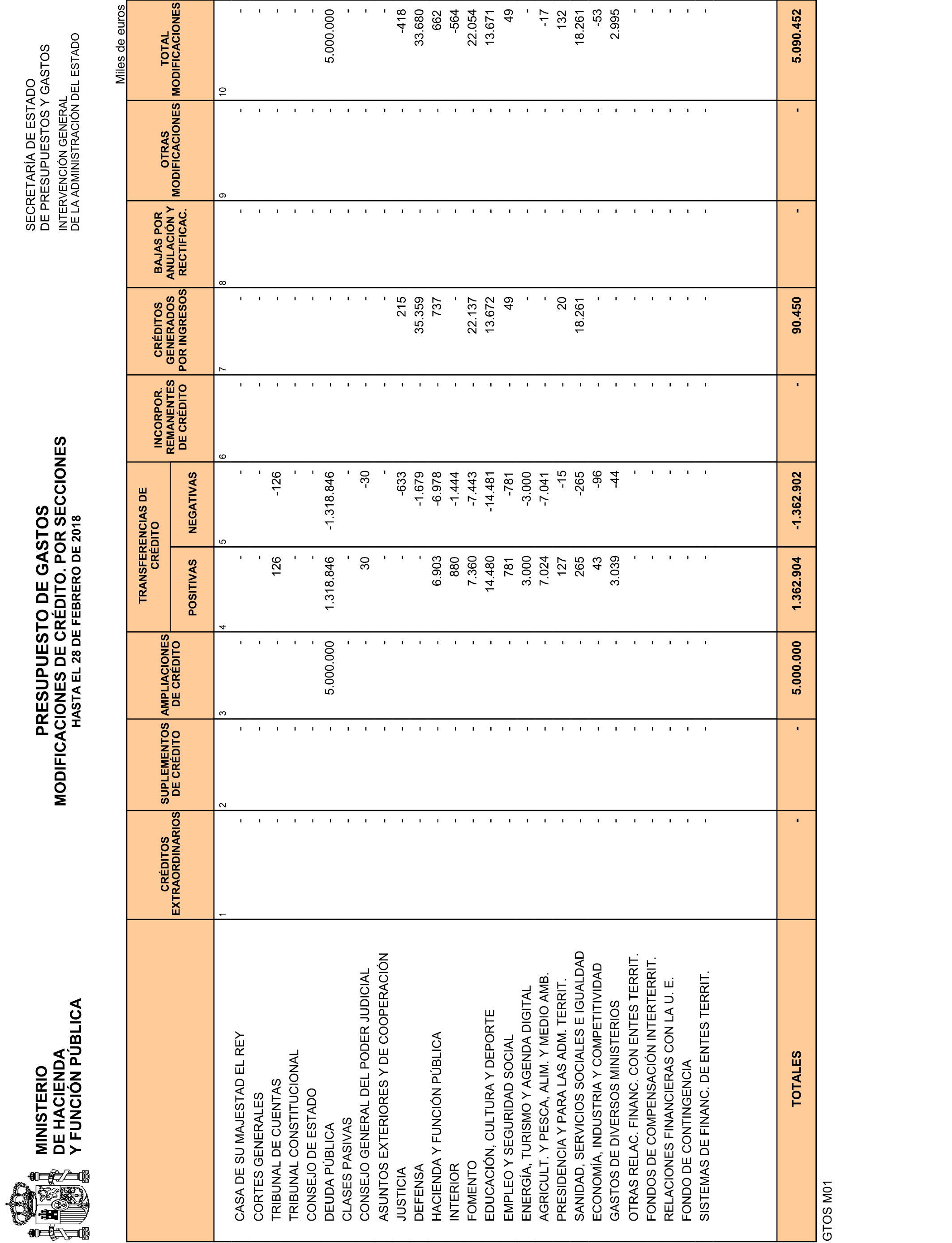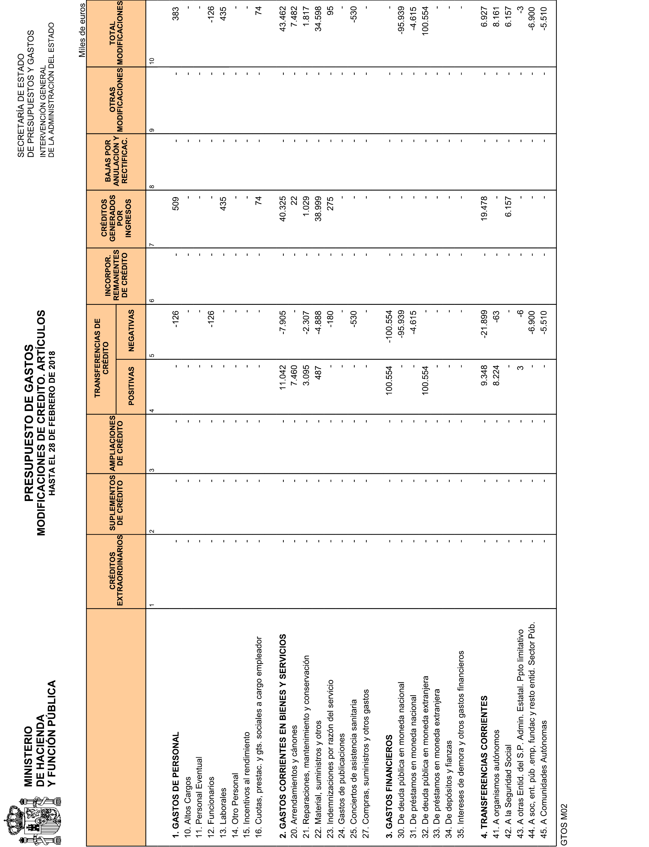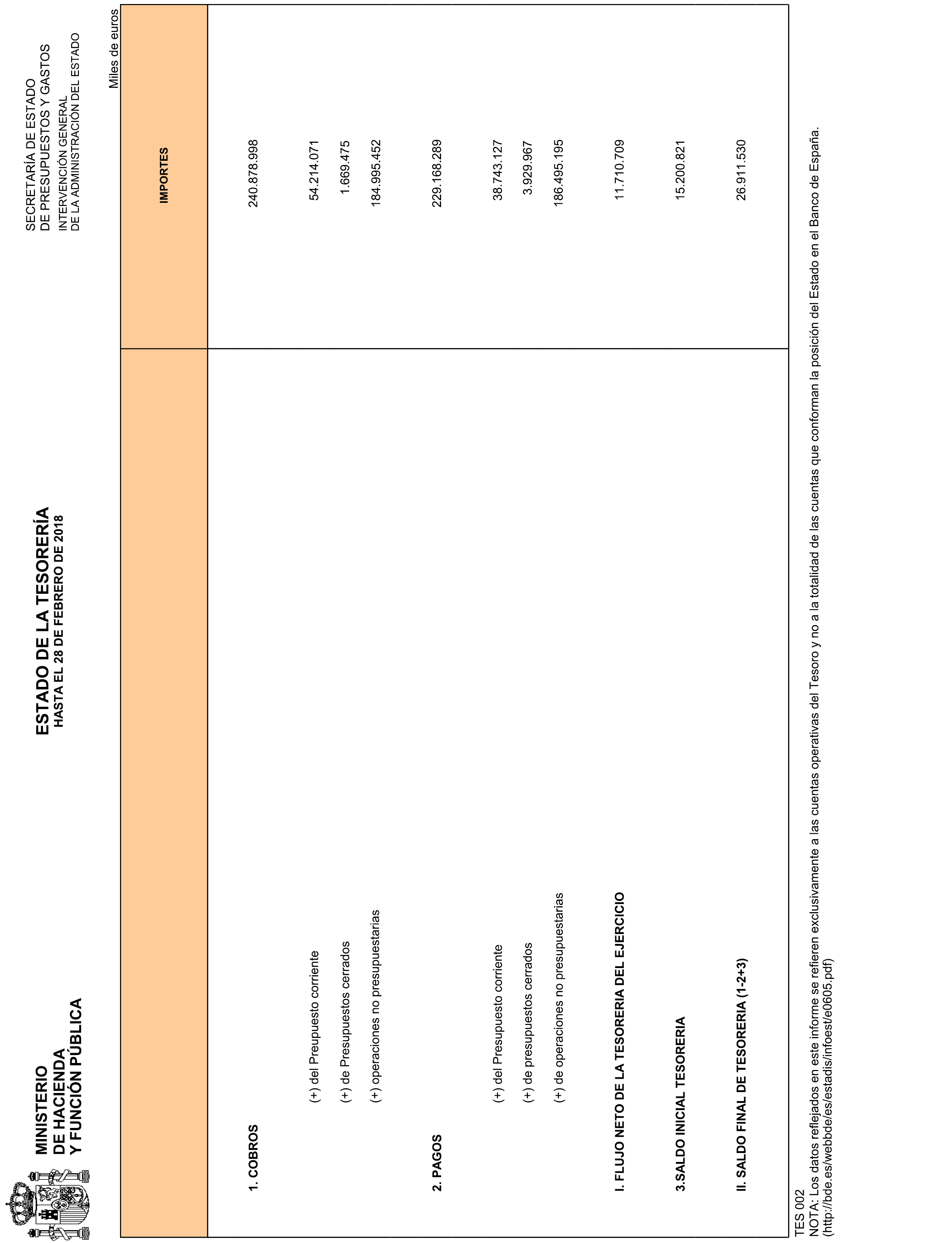 En aplicación de lo dispuesto en el artículo 136 de la Ley General Presupuestaria se hacen públicas las «Operaciones de ejecución del Presupuesto del Estado y de sus modificaciones y operaciones de Tesorería» correspondientes al mes de febrero de 2018.