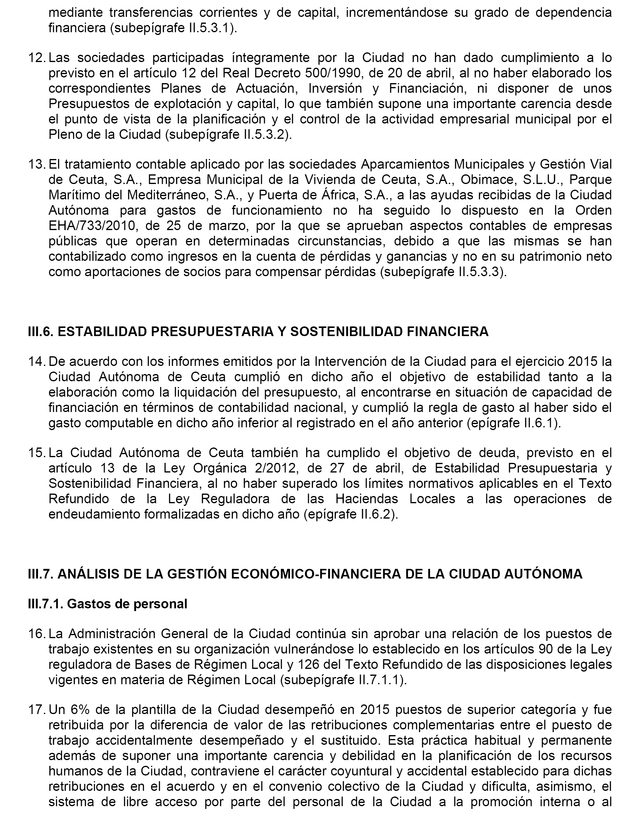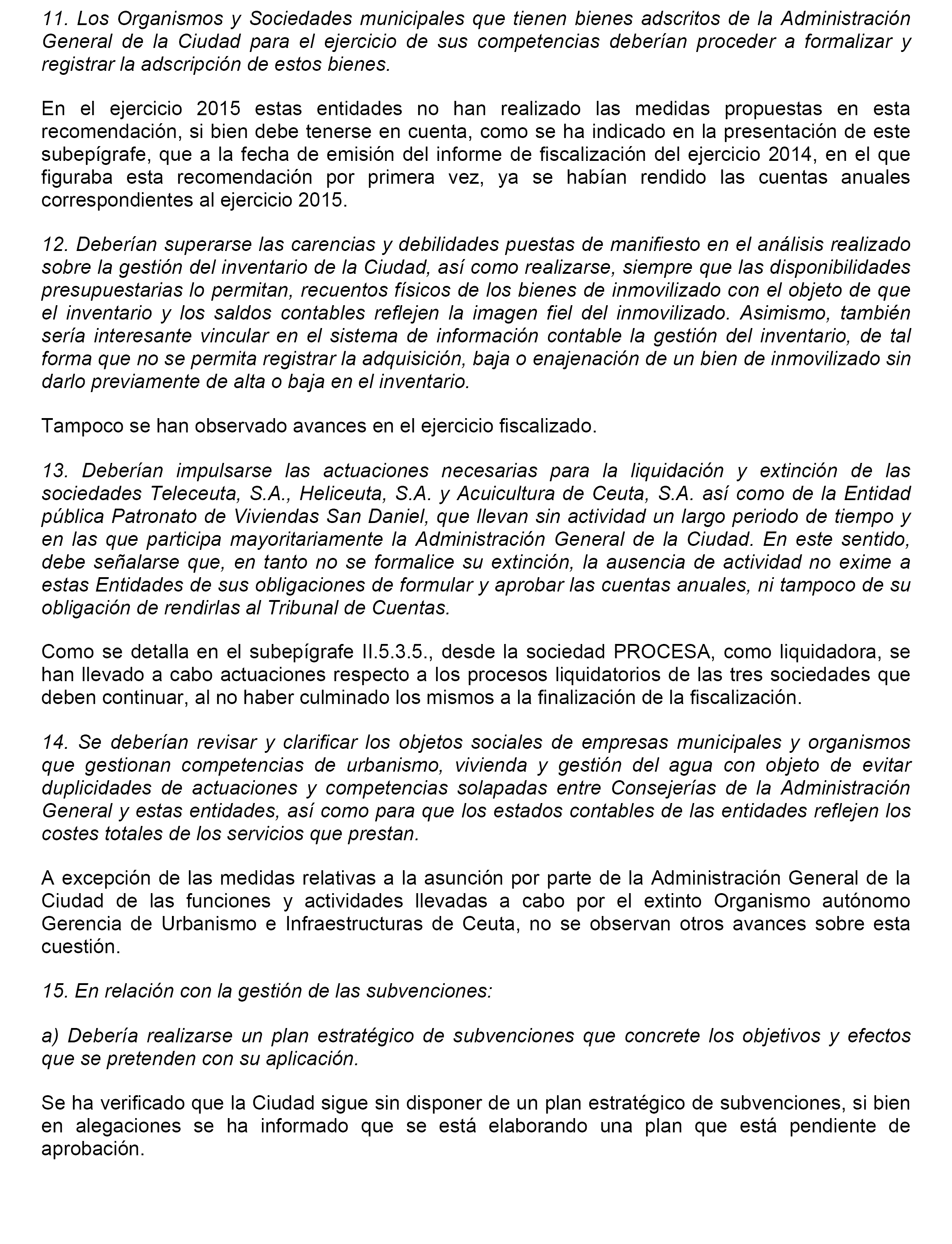 – Asumir las conclusiones y seguir las recomendaciones del informe de fiscalización del Tribunal de Cuentas.