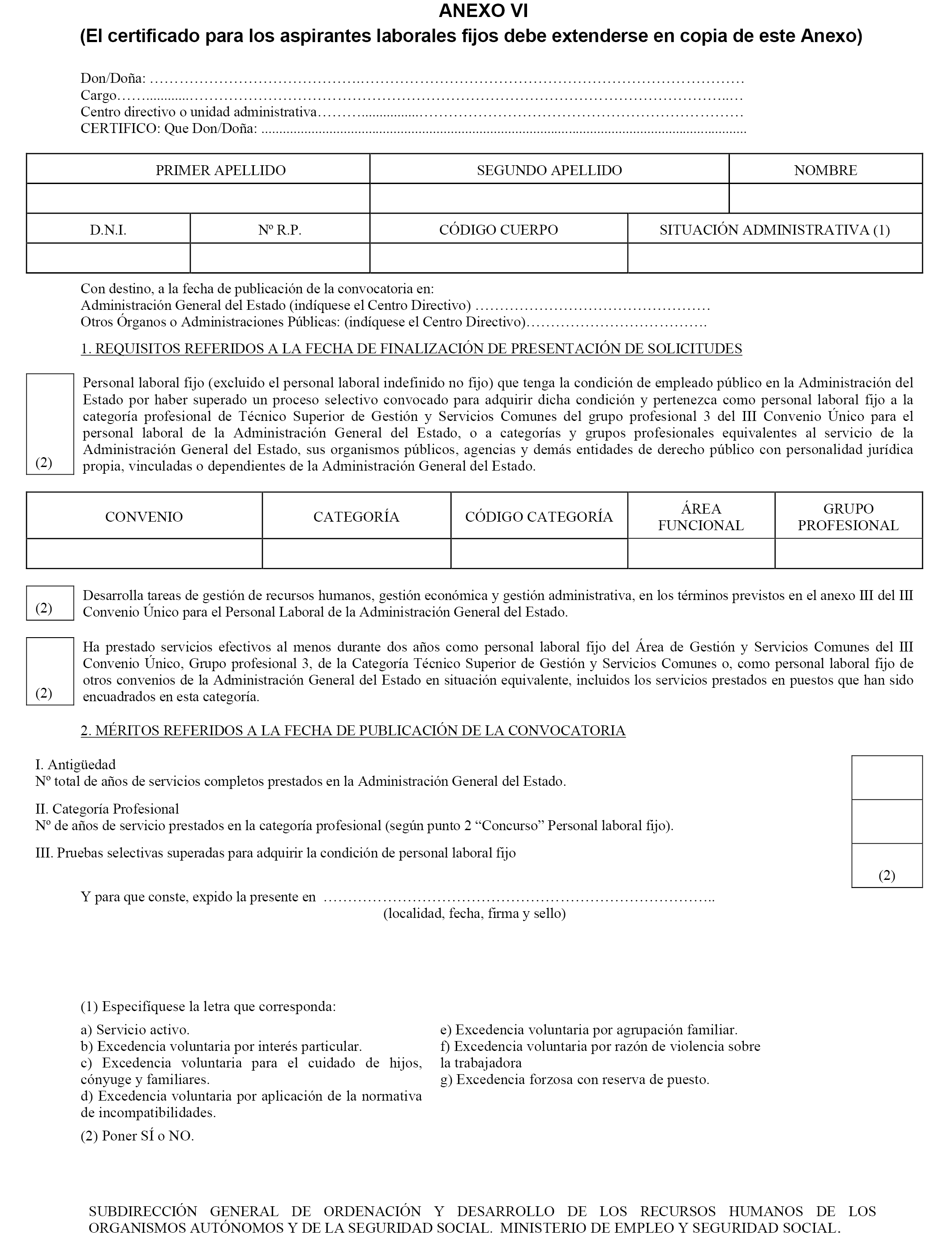 b) En el caso del personal laboral fijo, acreditación de pertenecer como personal laboral fijo a la categoría profesional de Técnico Superior de Gestión y Servicios Comunes del grupo profesional 3 del III Convenio Único para el personal laboral de la Administración General del Estado, o de que se trata de personal laboral fijo de una categoría y grupo profesionales equivalentes de otros convenios de Organismos Públicos, Agencias y demás Entidades de derecho público con personalidad jurídica propia, vinculadas o dependientes de la Administración General del Estado.