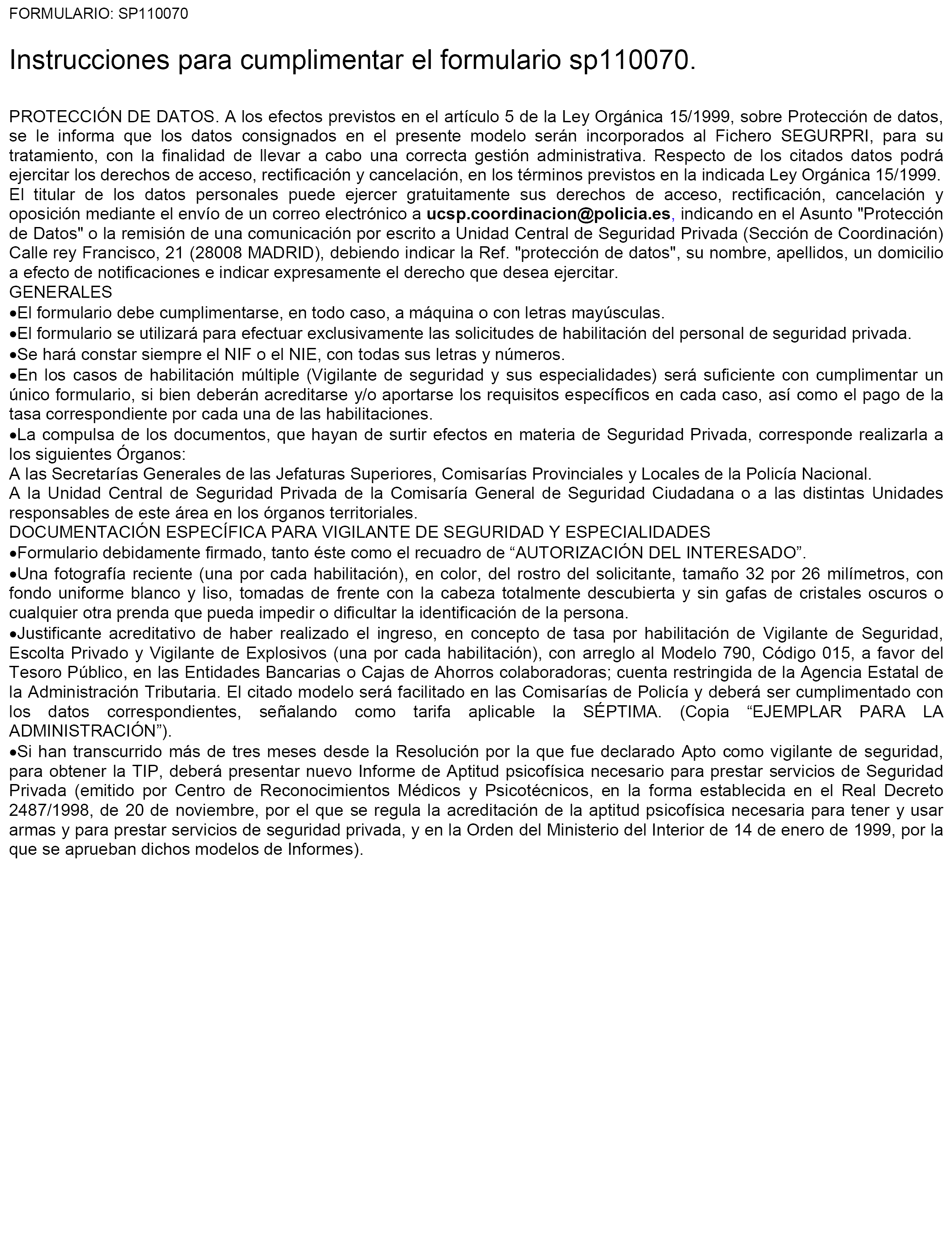 El citado modelo 790 será facilitado en las Dependencias Policiales y deberá ser cumplimentado con los datos correspondientes, señalando como tarifa aplicable la séptima.