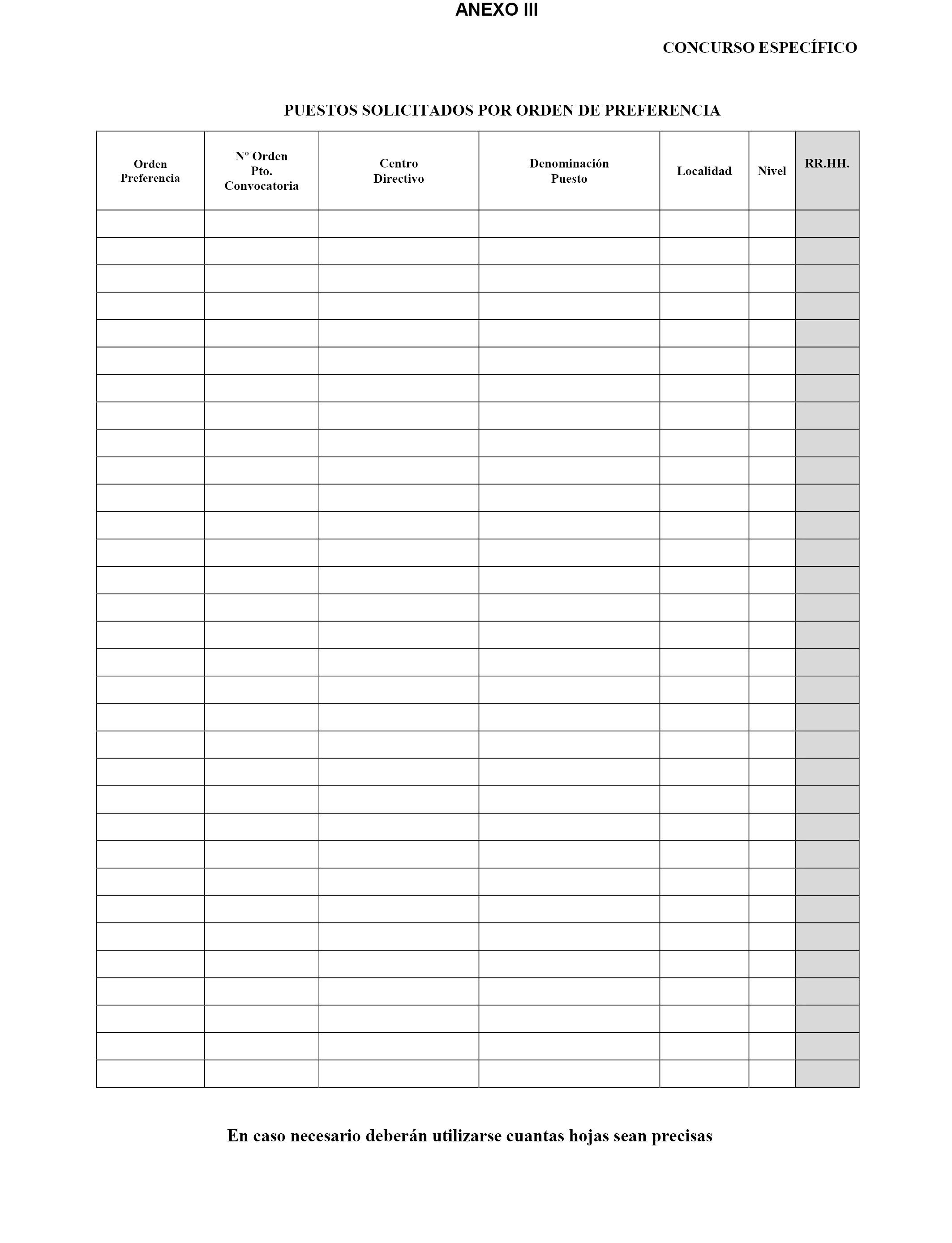 – Anexo III. Puestos solicitados por orden de preferencia.