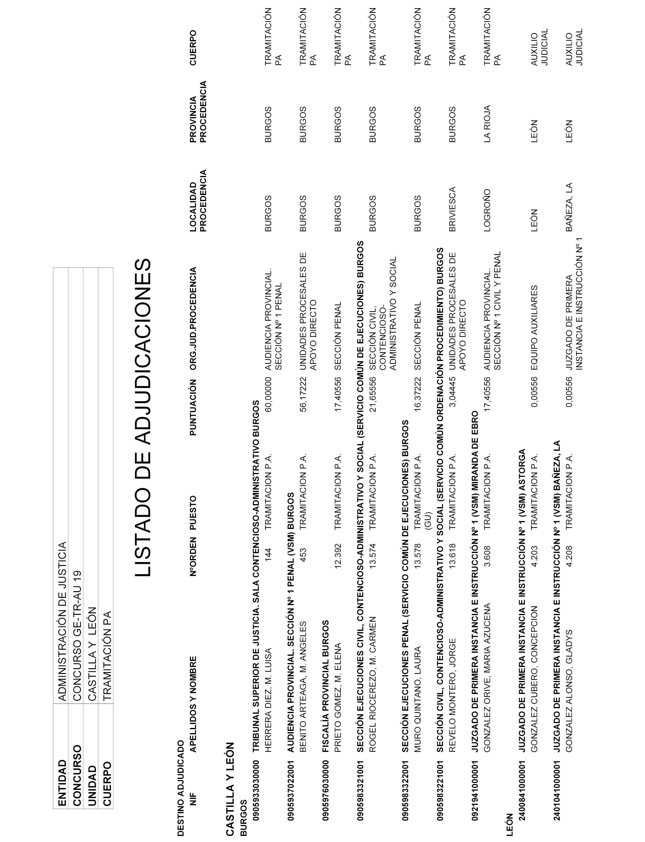 Resolver de forma definitiva el concurso de traslado entre funcionarios de los Cuerpos y Escalas de Gestión Procesal y Administrativa, Tramitación Procesal y Administrativa y Auxilio Judicial de la Administración de Justicia convocado por Orden JUS/776/2019, de 25 de junio, tal y como se relaciona en el anexo.