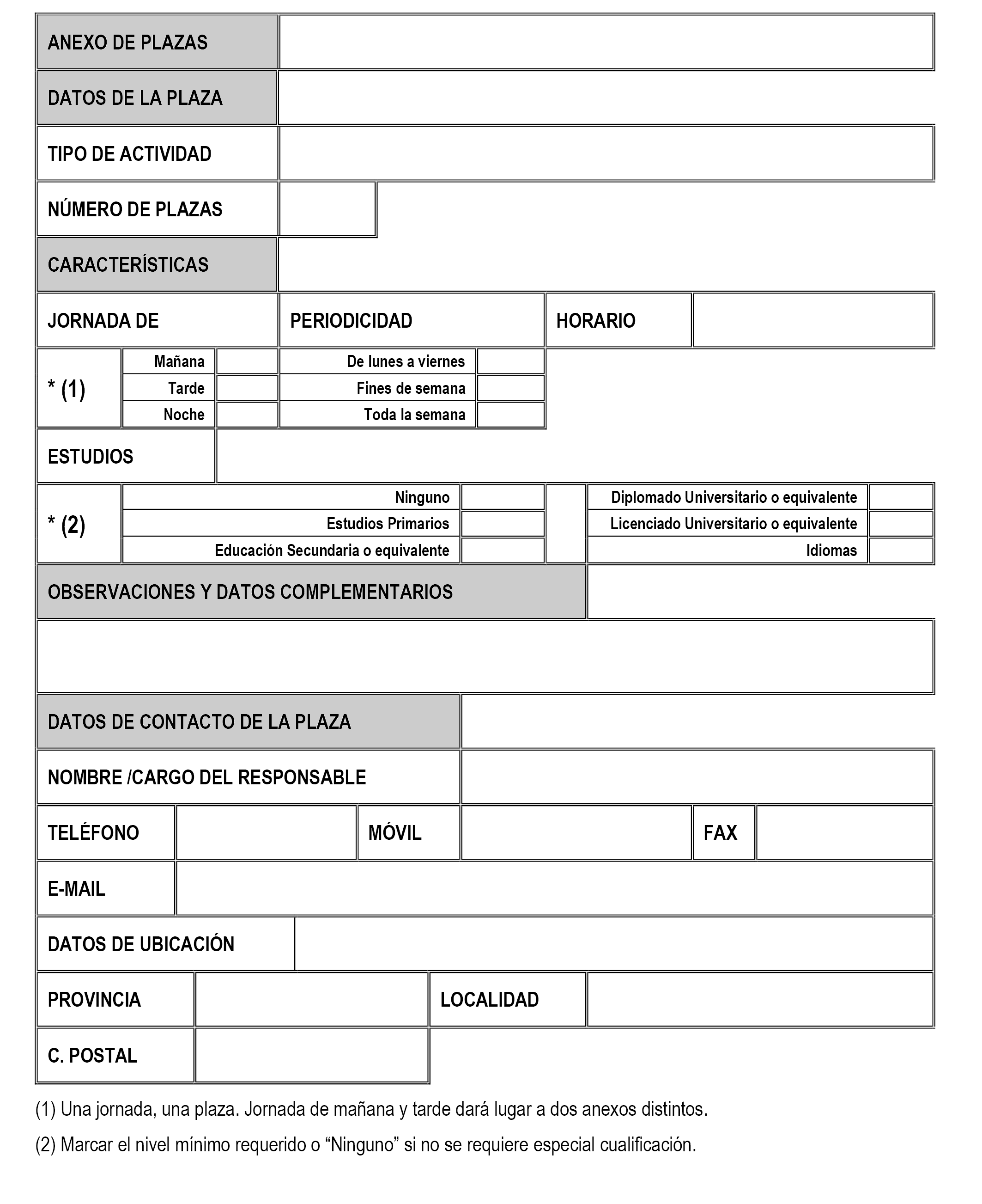 1. La Asociación ANMAG deberá remitir a los Servicios de Gestión de Penas y Medidas Alternativas de la Secretaría General de Instituciones Penitenciarias, el anexo II cumplimentado con los datos sobre las plazas que se indican.