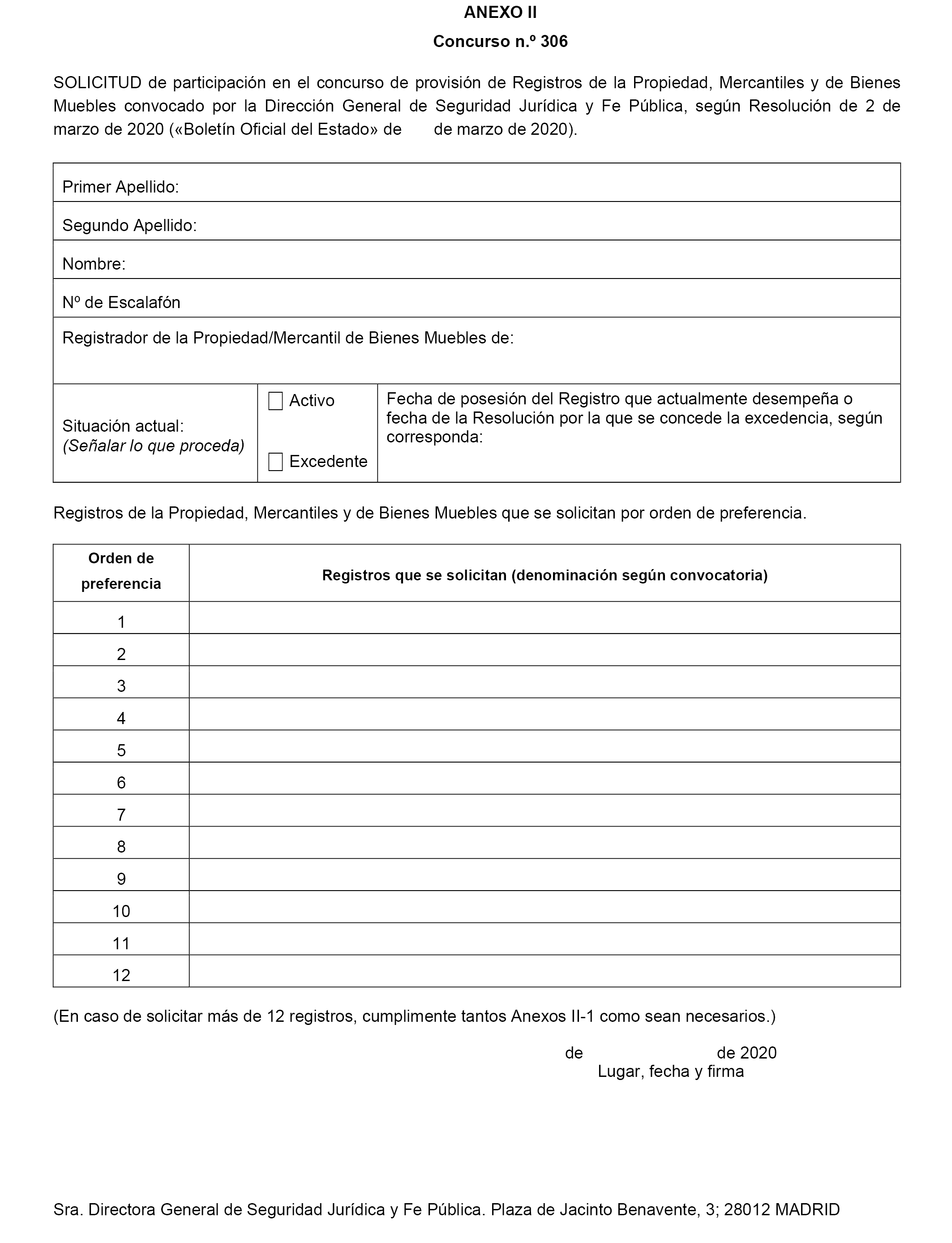 4. La solicitud para tomar parte en esta convocatoria será única para cada participante, aunque se soliciten vacantes radicadas en el territorio de la Comunidad Autónoma de Cataluña y que, por tanto, figuren en la convocatoria de la Dirección General de Derecho y de Entidades Jurídicas del Departamento de Justicia de la Generalitat de Cataluña. En la solicitud se indicará el orden de preferencia si se solicitara más de un Registro.