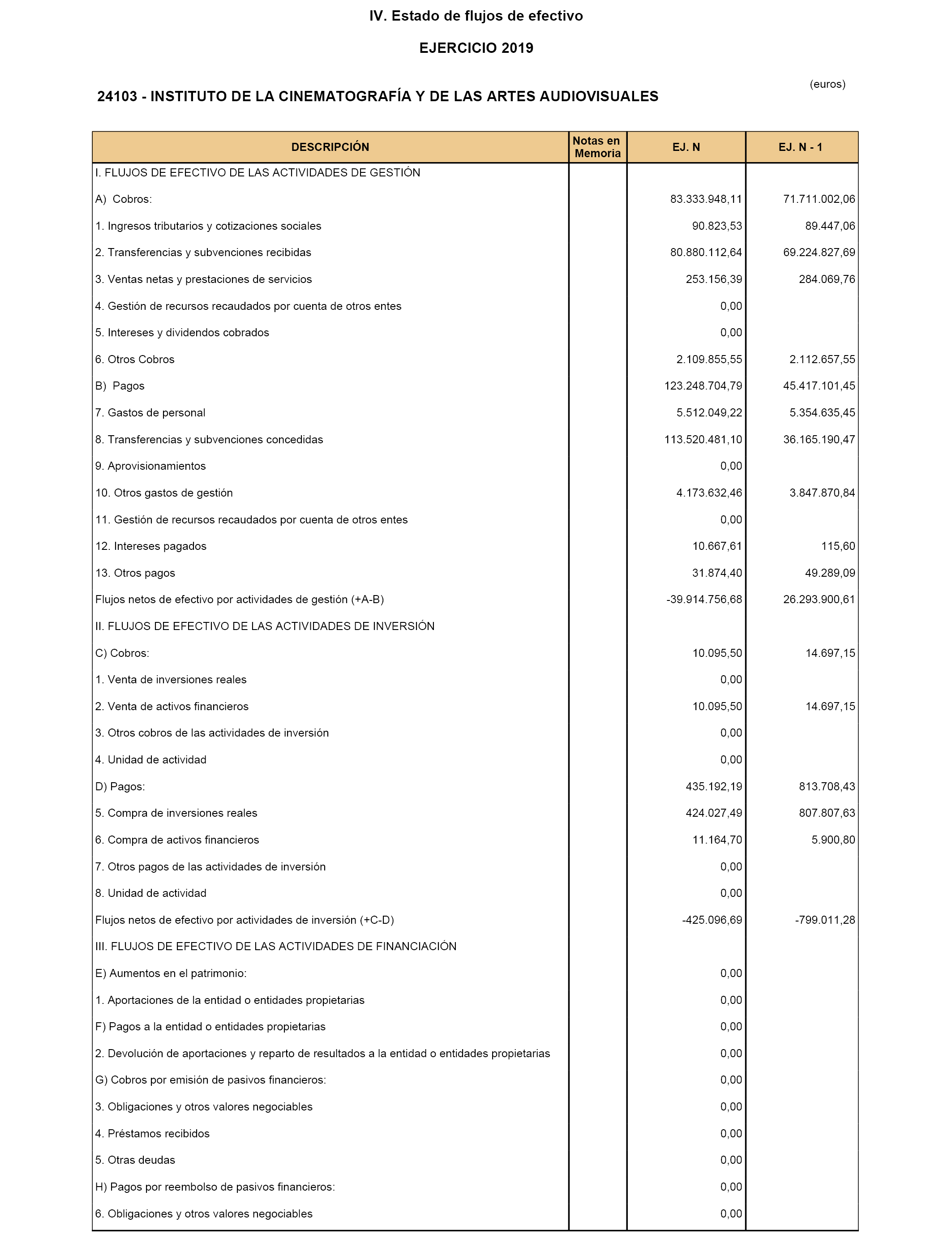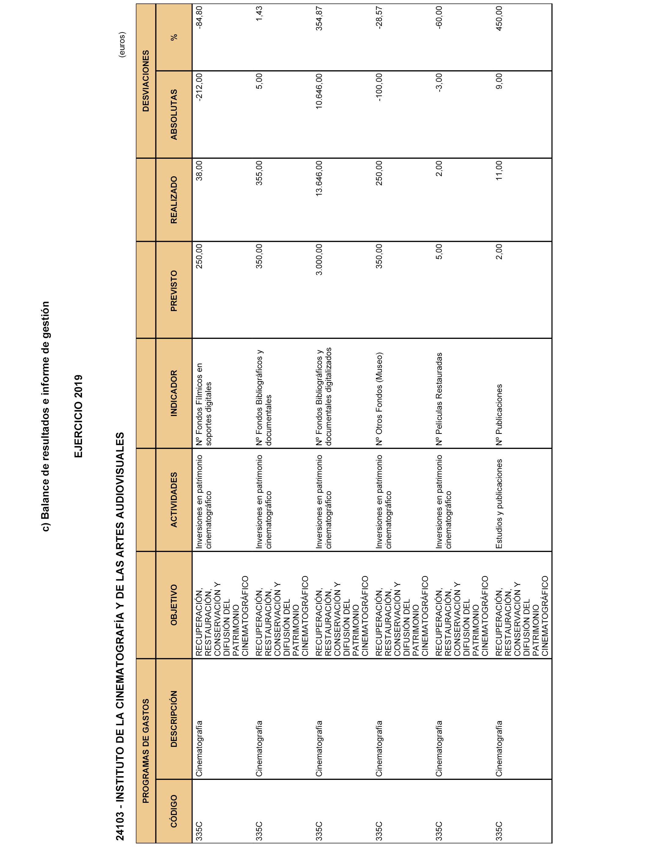 En aplicación de lo dispuesto en la regla 38 de la Orden EHA/2045/2011, de 14 de julio, por la que se aprueba la Instrucción de Contabilidad para la Administración Institucional del Estado, de acuerdo con lo dispuesto en el artículo 136.3 de la Ley 47/2003, de 26 de noviembre, General Presupuestaria y lo establecido en la Resolución de 28 de mayo de 2012, de la Intervención General de la Administración del Estado, por la que se determina el contenido mínimo de la información a publicar en el «Boletín Oficial del Estado» por las entidades a las que les sea de aplicación la Instrucción de Contabilidad para la Administración Institucional del Estado, se hace pública la información contenida en el resumen de las Cuentas Anuales del Instituto de la Cinematografía y de las Artes Audiovisuales, correspondientes al ejercicio 2019 y el informe de auditoría de cuentas.