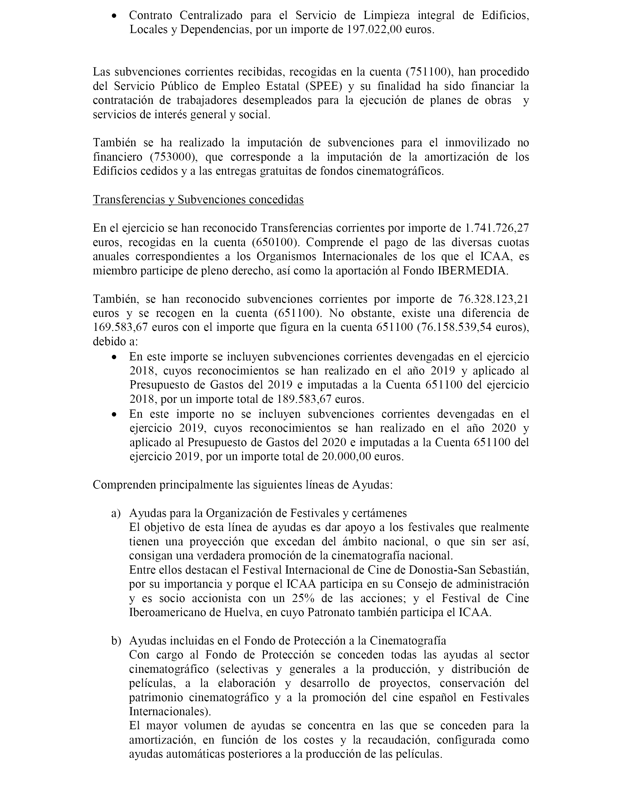 Las cuentas anuales completas y el informe de auditoría de cuentas están disponibles en el área de Cine y Audiovisuales de la página WEB del Ministerio de Cultura y Deporte, accesible desde la dirección www.icaa.es, en el apartado Cuentas del Organismo.