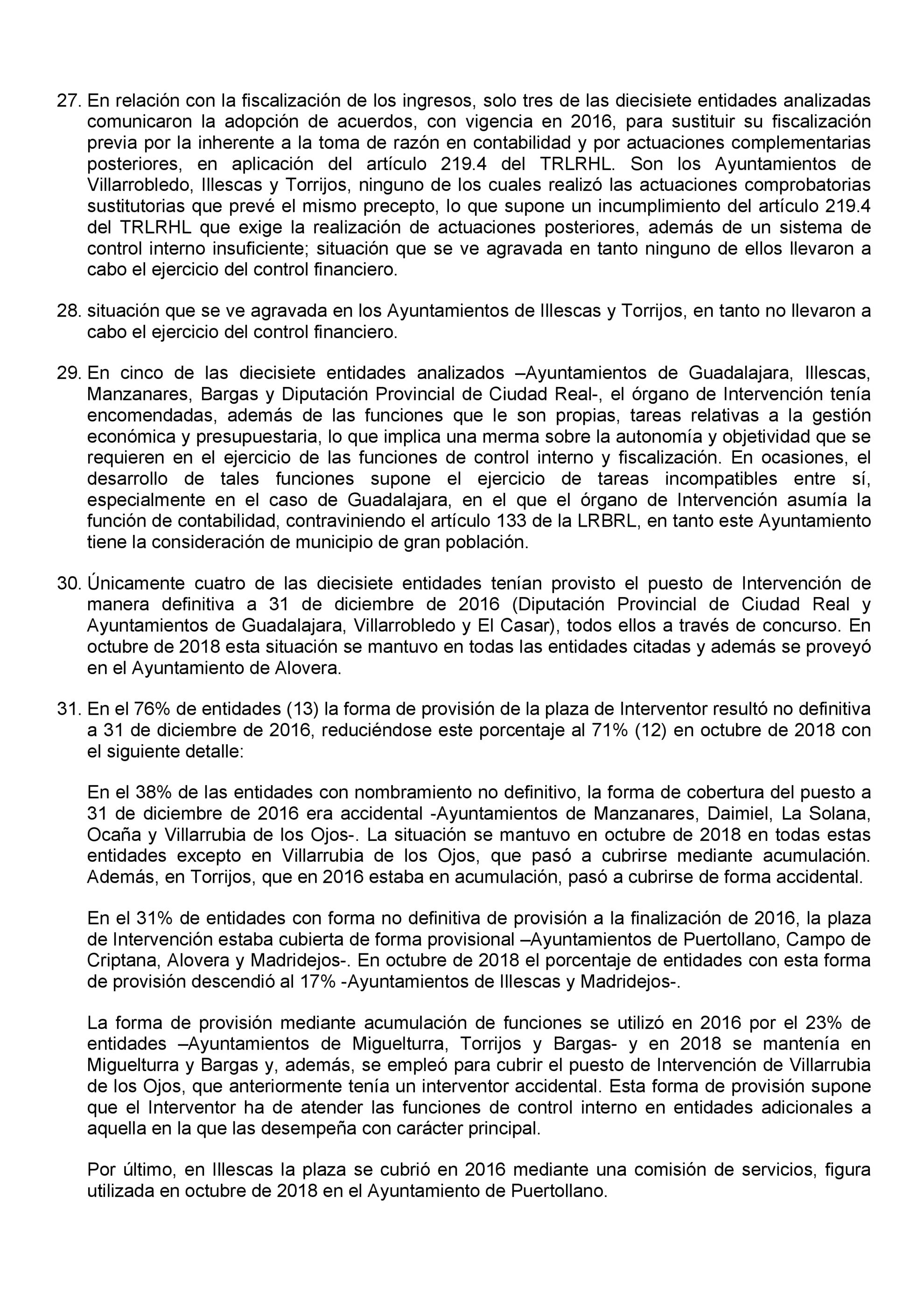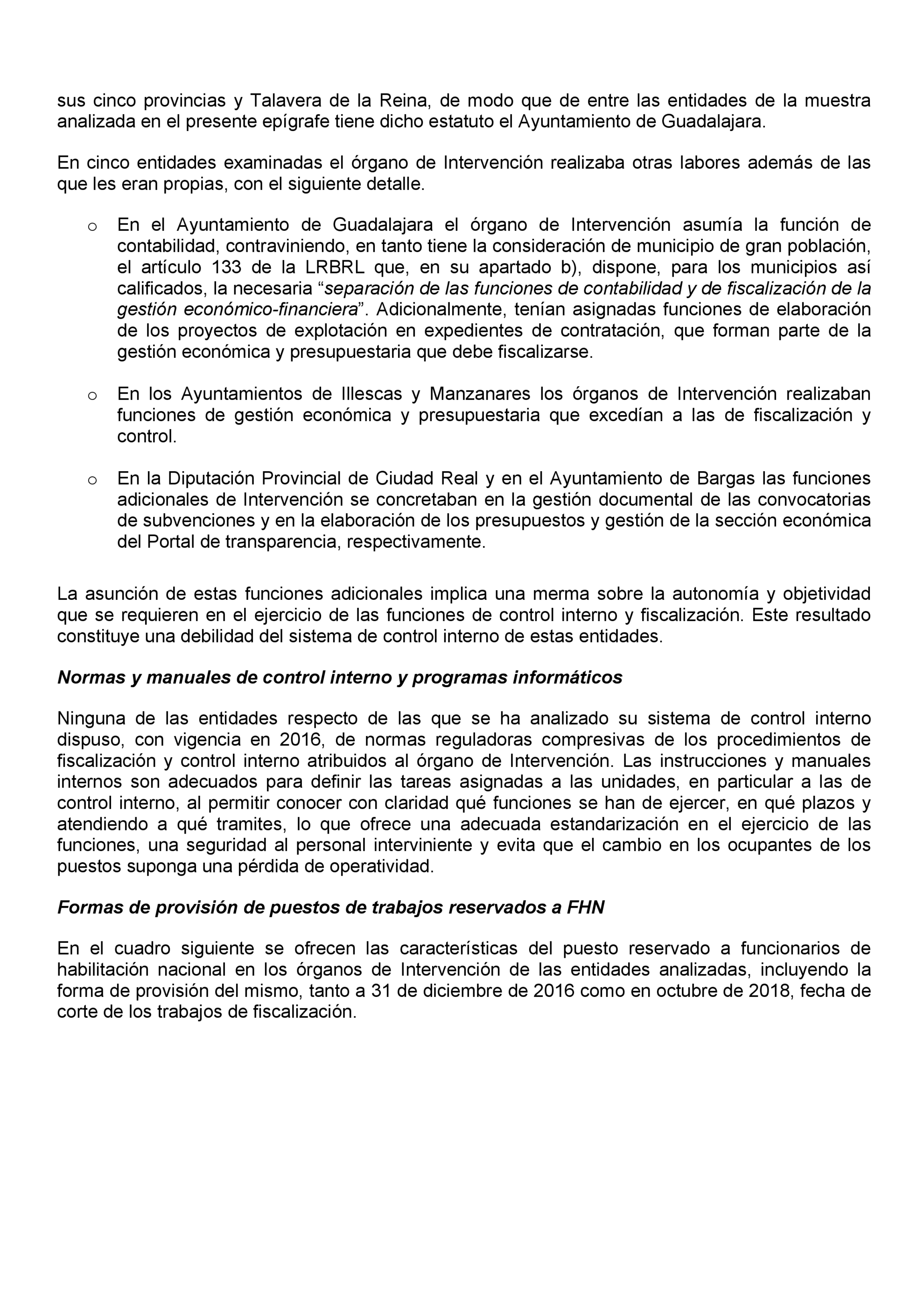 – Establecer las medidas necesarias para asegurar una dotación de efectivos suficientes de funcionarios de habilitación nacional en los órganos de control interno de las entidades locales, cuya selección corresponde a la Administración General del Estado, y la Comunidad Autónoma debería impulsar la agrupación de puestos.