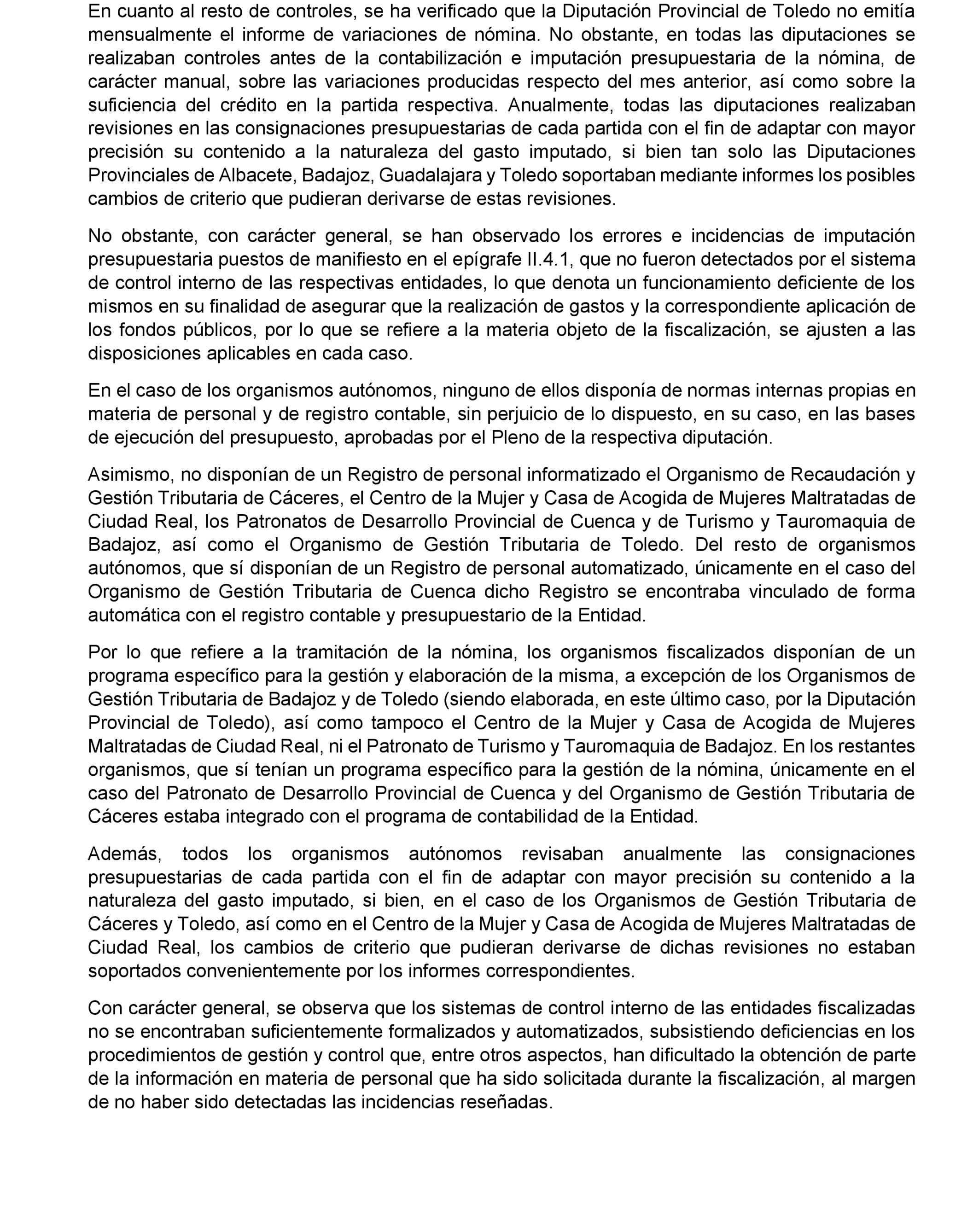 – Mejorar la formalización y automatización de sus sistemas de control interno, adoptando un sistema de fiscalización previa plena en aquellas diputaciones provinciales que carezcan del mismo. También, a su vez, realizar actuaciones de control financiero posterior.