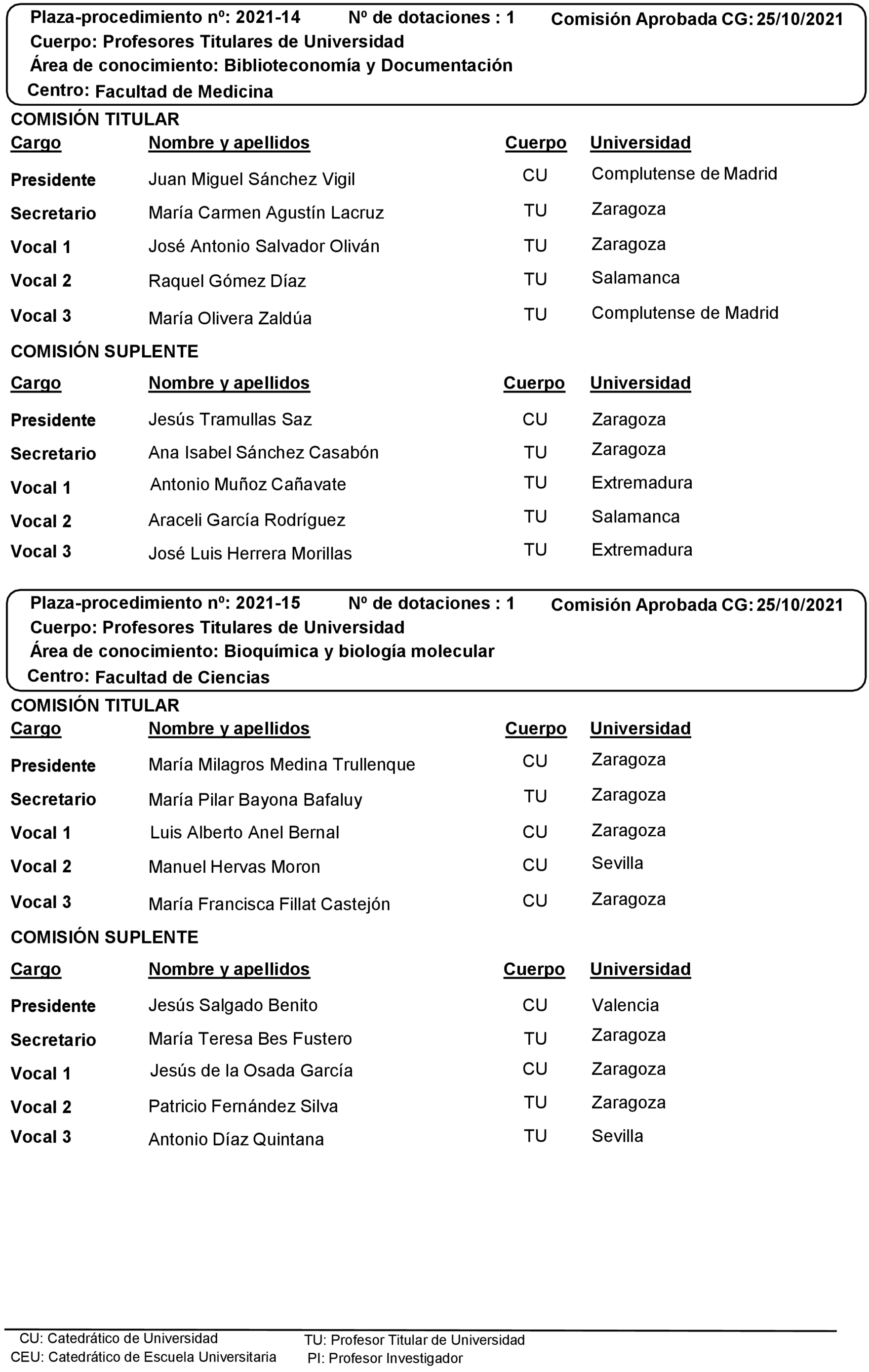 4.2 Conforme a lo establecido en el artículo 62.3 de la LOU y en el artículo 6.4 del RD1313, el currículo de cada uno de los miembros que componen las comisiones de acceso se encuentra publicado en la página web de la Universidad https://recursoshumanos.unizar.es/servicio-pdi/oposiciones-concursos/convocatorias-concursos-acceso.