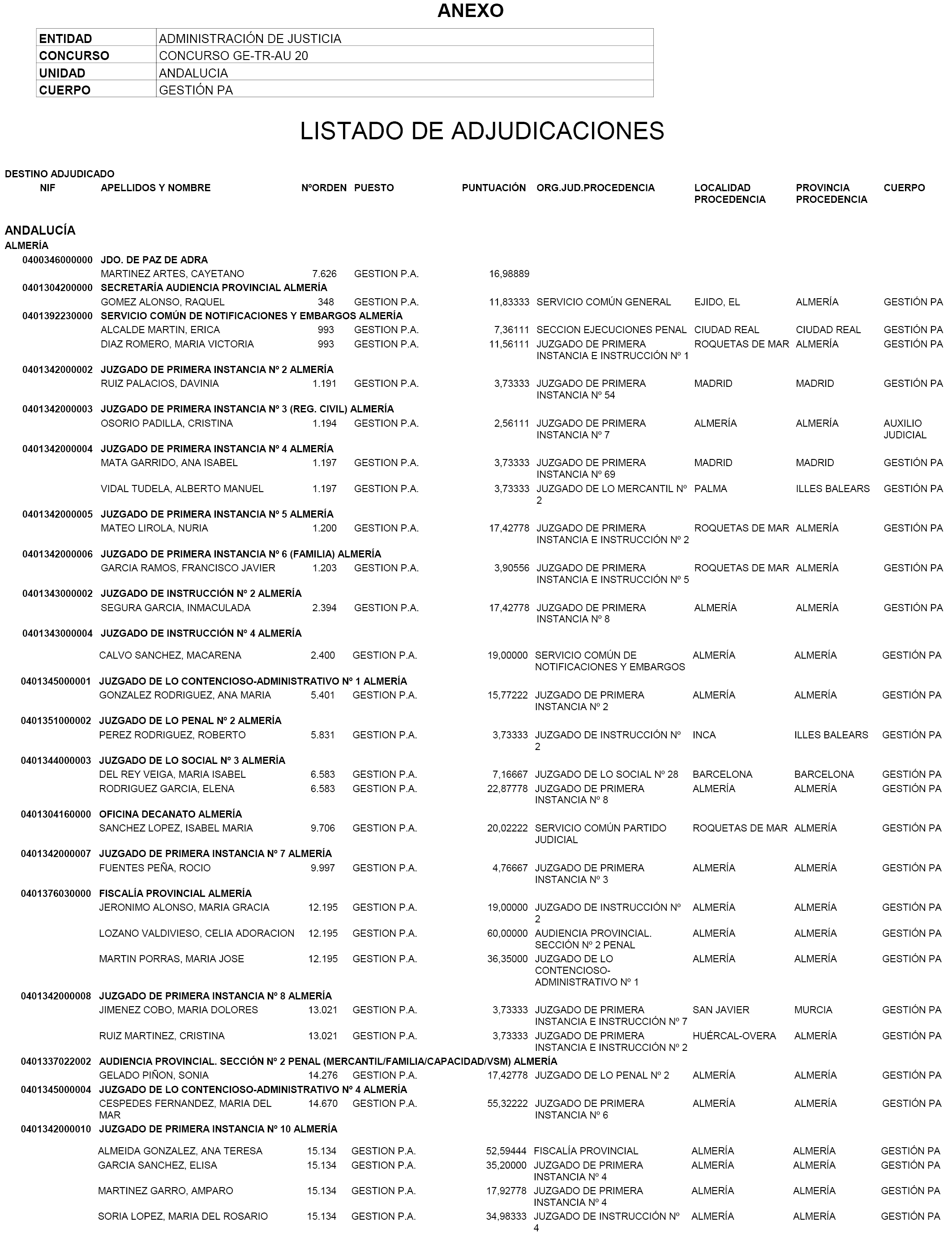 Resolver de forma definitiva el concurso de traslado entre funcionarios de los Cuerpos y Escalas de Gestión Procesal y Administrativa, Tramitación Procesal y Administrativa y Auxilio Judicial de la Administración de Justicia convocado por Orden JUS/808/2020, de 28 de julio, tal y como se relaciona en el Anexo.