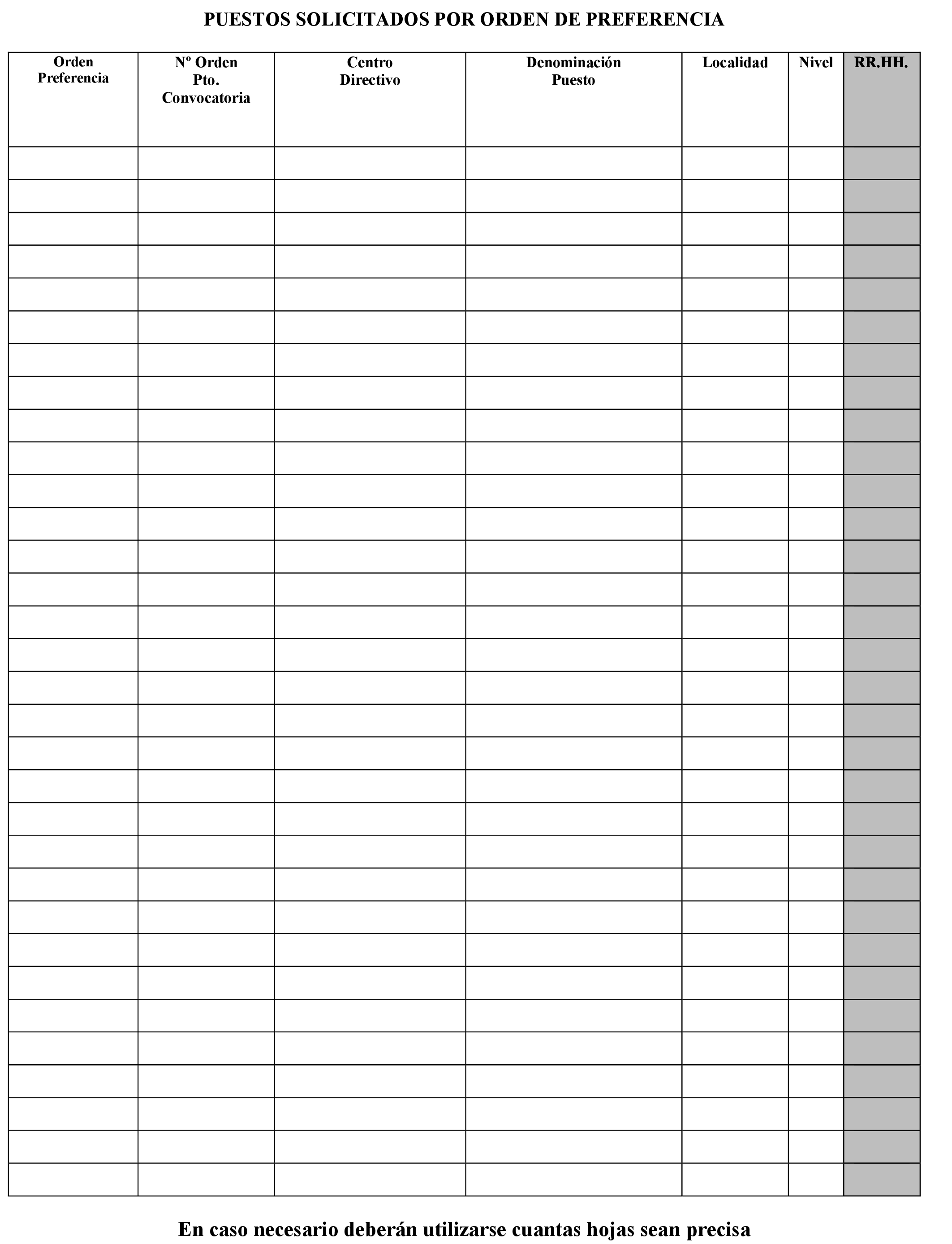 − Anexo III: Puestos solicitados por orden de preferencia.